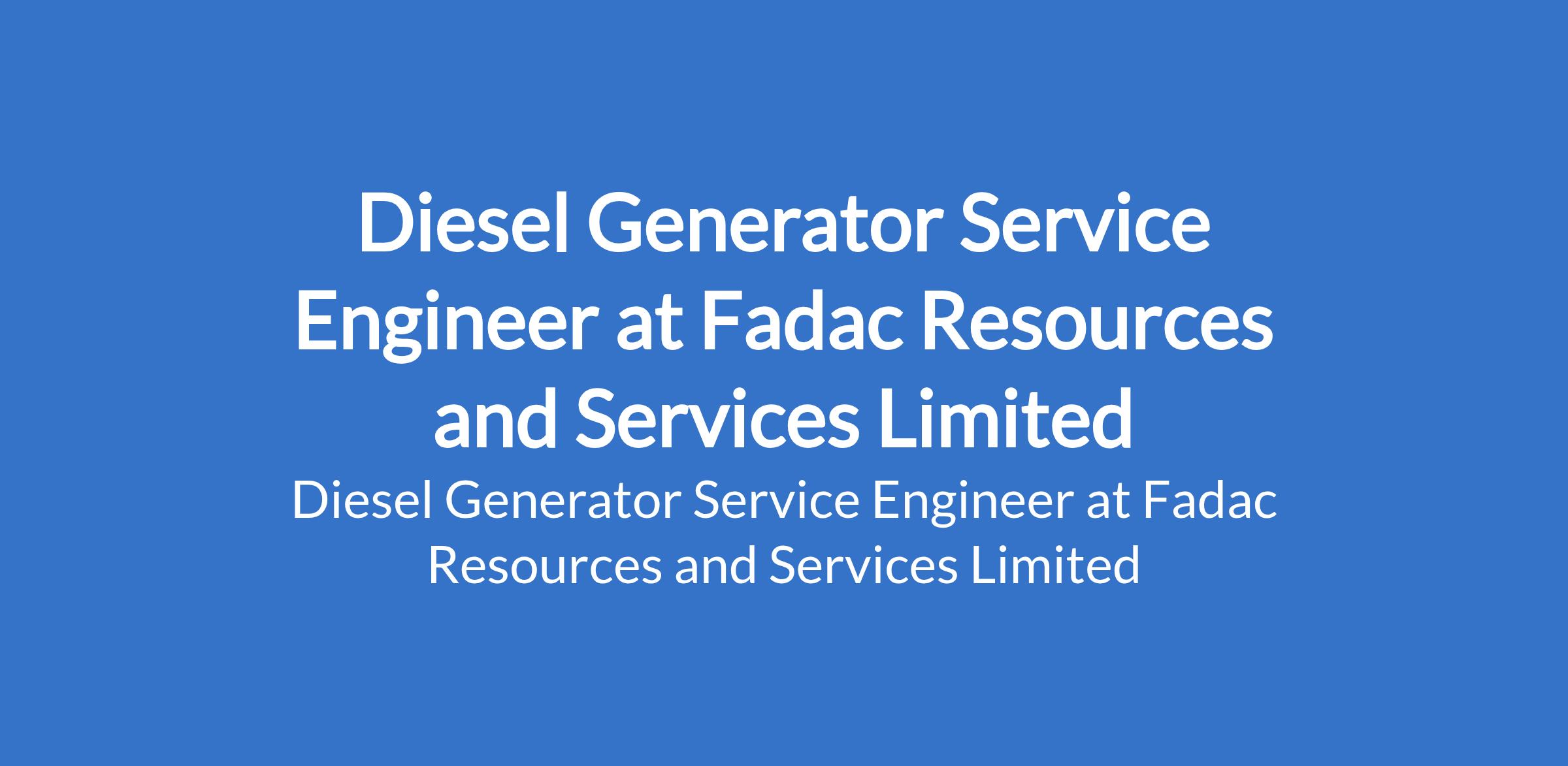 Fadac Resources and Services Limited is recruiting to fill the position of: Diesel Generator Service Engineer. The position is located in Abuja (FCT). Interested candidates should possess an HND / B.Sc in Engineering, Business, or a related field with 35 years of experience (electrical/Diesel generator repairs).