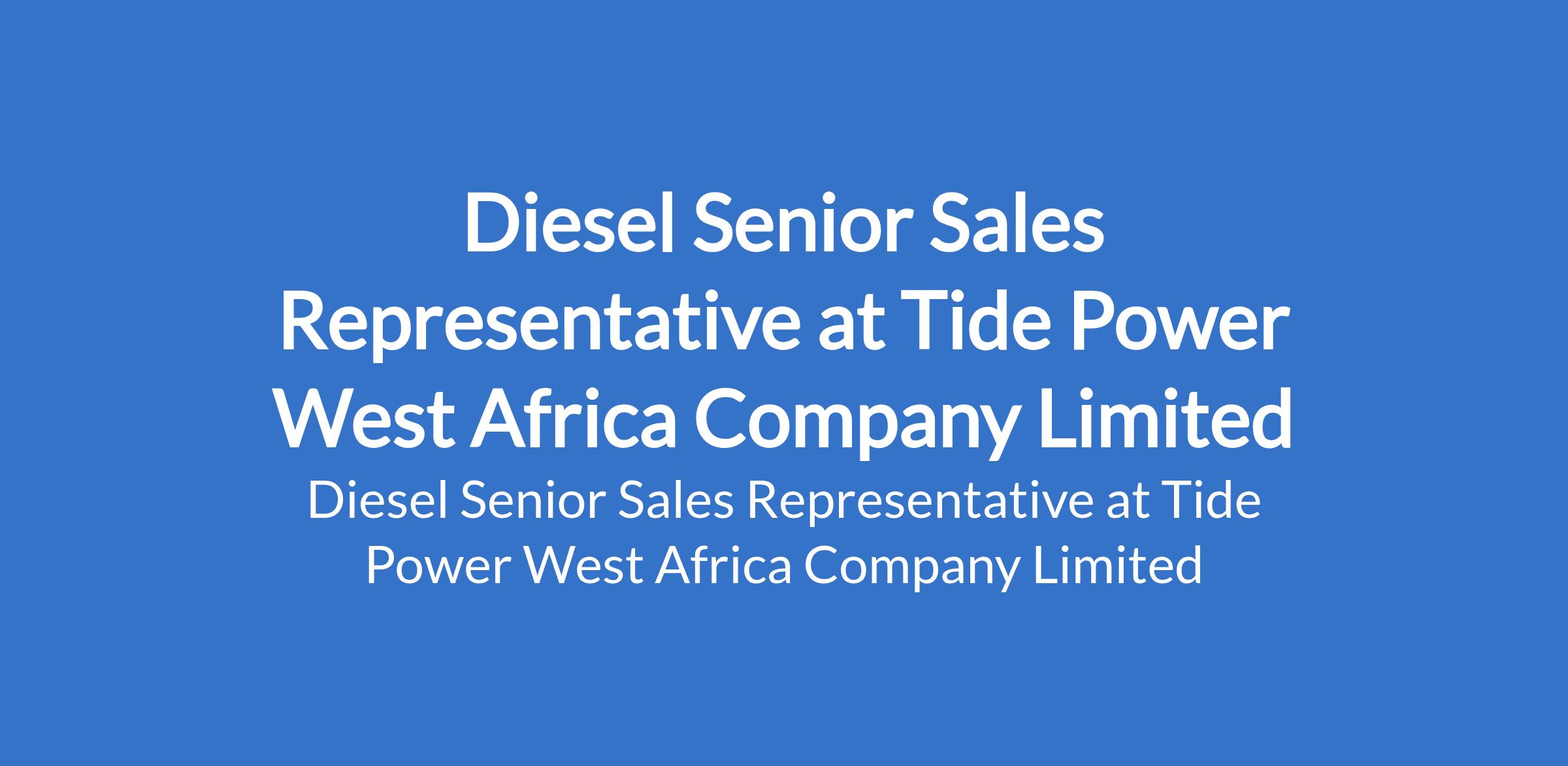 Tide Power West Africa Company Limited is recruiting to fill the position of: Diesel Senior Sales Representative. The position is located in Abuja (FCT). Interested candidates should possess relevant qualifications with a minimum of 3 years experience in generator set sales.