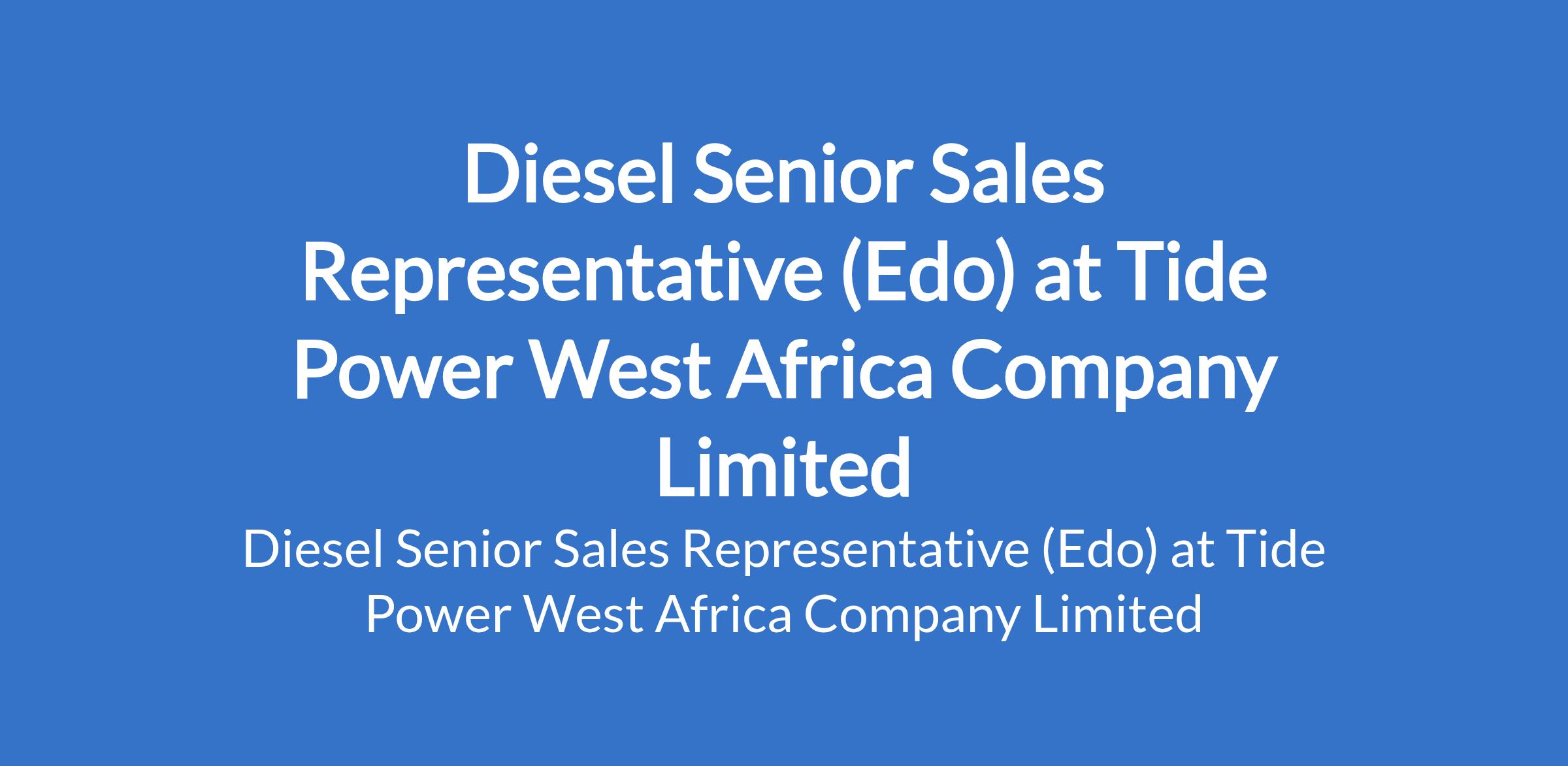Tide Power West Africa Company Limited is recruiting to fill the position of: Diesel Senior Sales Representative. The position is located in Benin, Edo State. Interested candidates should possess relevant qualifications with a minimum of 3 years experience in generator set sales.