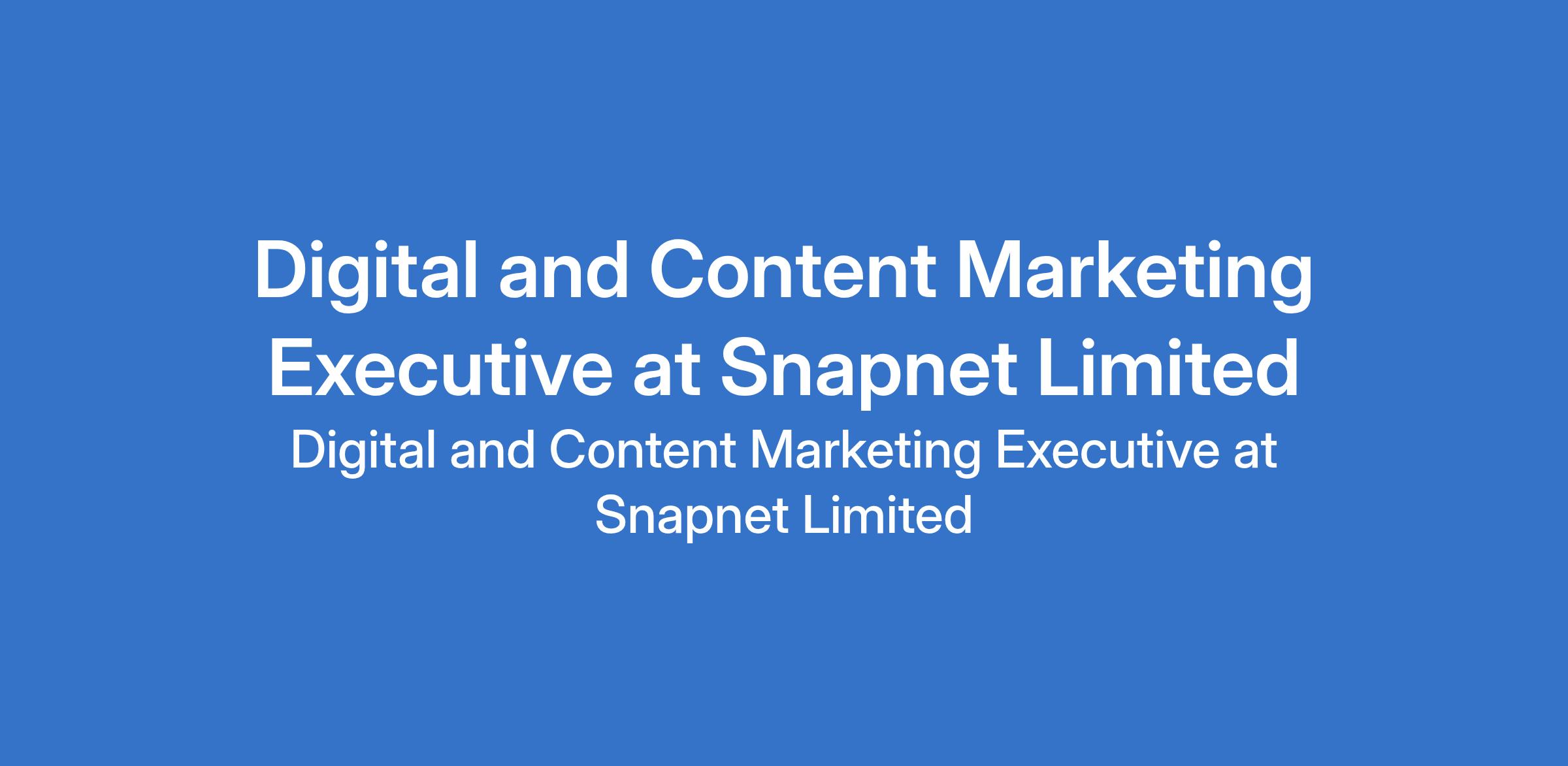 Snapnet Limited is recruiting to fill the position of: Digital and Content Marketing Executive. The position is located in Lekki, Lagos State. Salary: N200,000 - N220,000 per month. Interested candidates should possess a Bachelors Degree in Marketing, Communications, Business, or related fields with 47 years experience in B2B SaaS or Tech marketing.