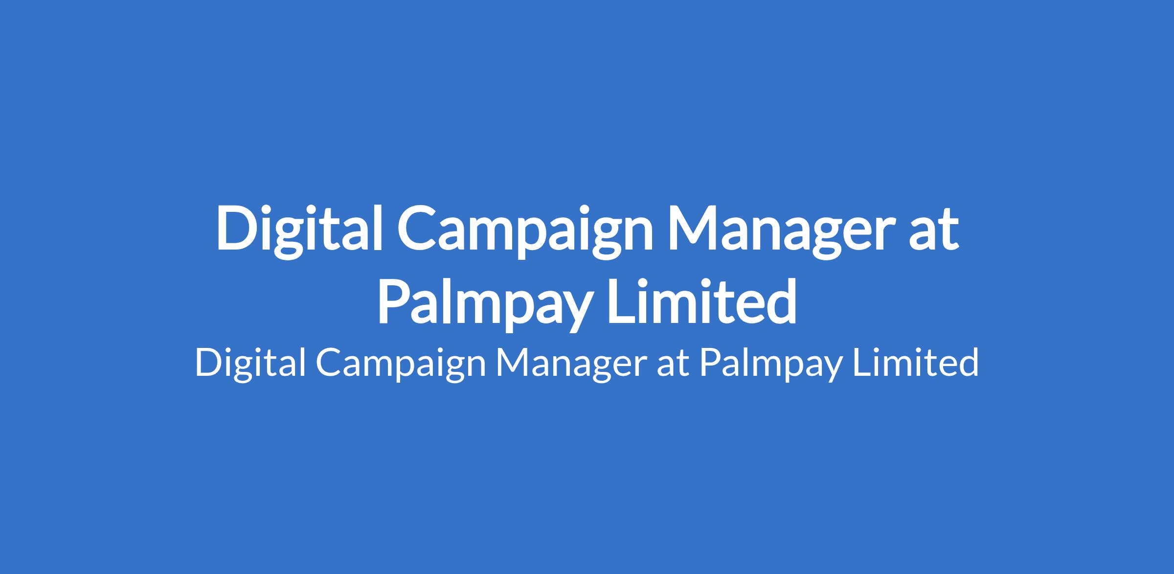 Palmpay Limited is recruiting to fill the position of: Digital Campaign Manager. The position is located in Lagos State. Interested candidates should possess a Bachelors Degree from a top university with a minimum of 5 years of relevant project management experience, with experience successfully coordinating multiple stakeholders essential.
