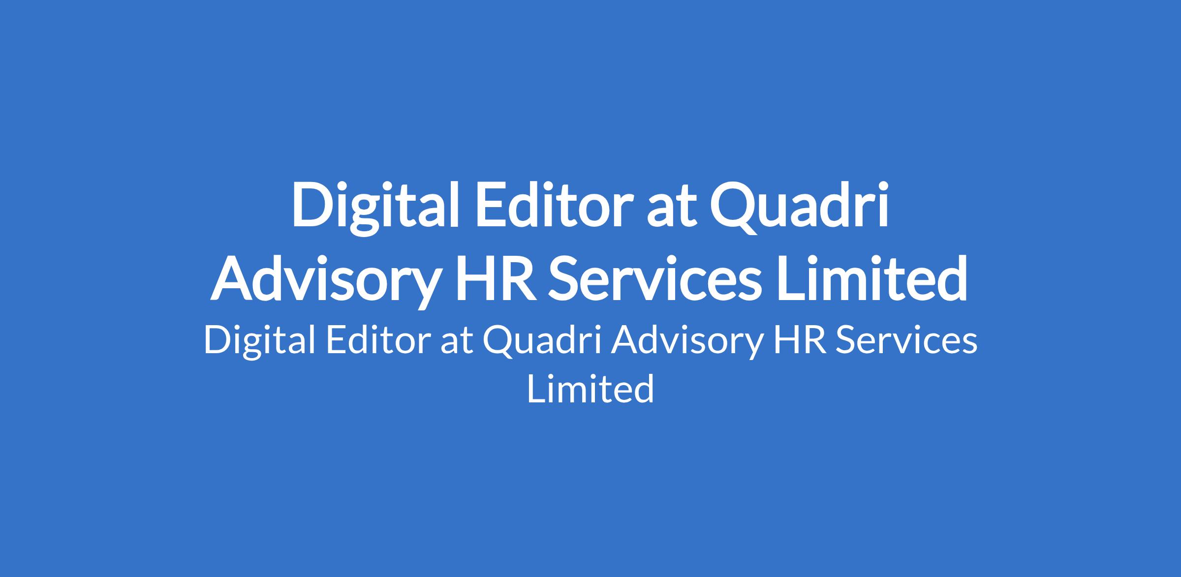Quadri Advisory HR Services Limited is recruiting to fill the position of: Digital Editor. The position is located in Lagos State. Salary: N200,000 - N250,000 monthly. Interested candidates should have a BSc. Degree in Digital Editing, Video Production or related field with proven work experience as a digital editor.