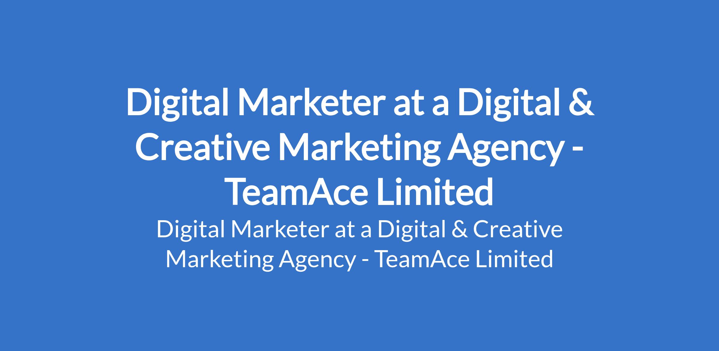 TeamAce Limited - Our client, a reputable organization in the Digital & Creative Marketing Agency space is recruiting to fill the position of: Digital Marketer. Salary: GHS 1,700 - 2,000 Monthly. Interested candidates should possess a Bachelors Degree in Marketing, Communications, or related fields with a minimum of 2 years experience in digital marketing or social media management.