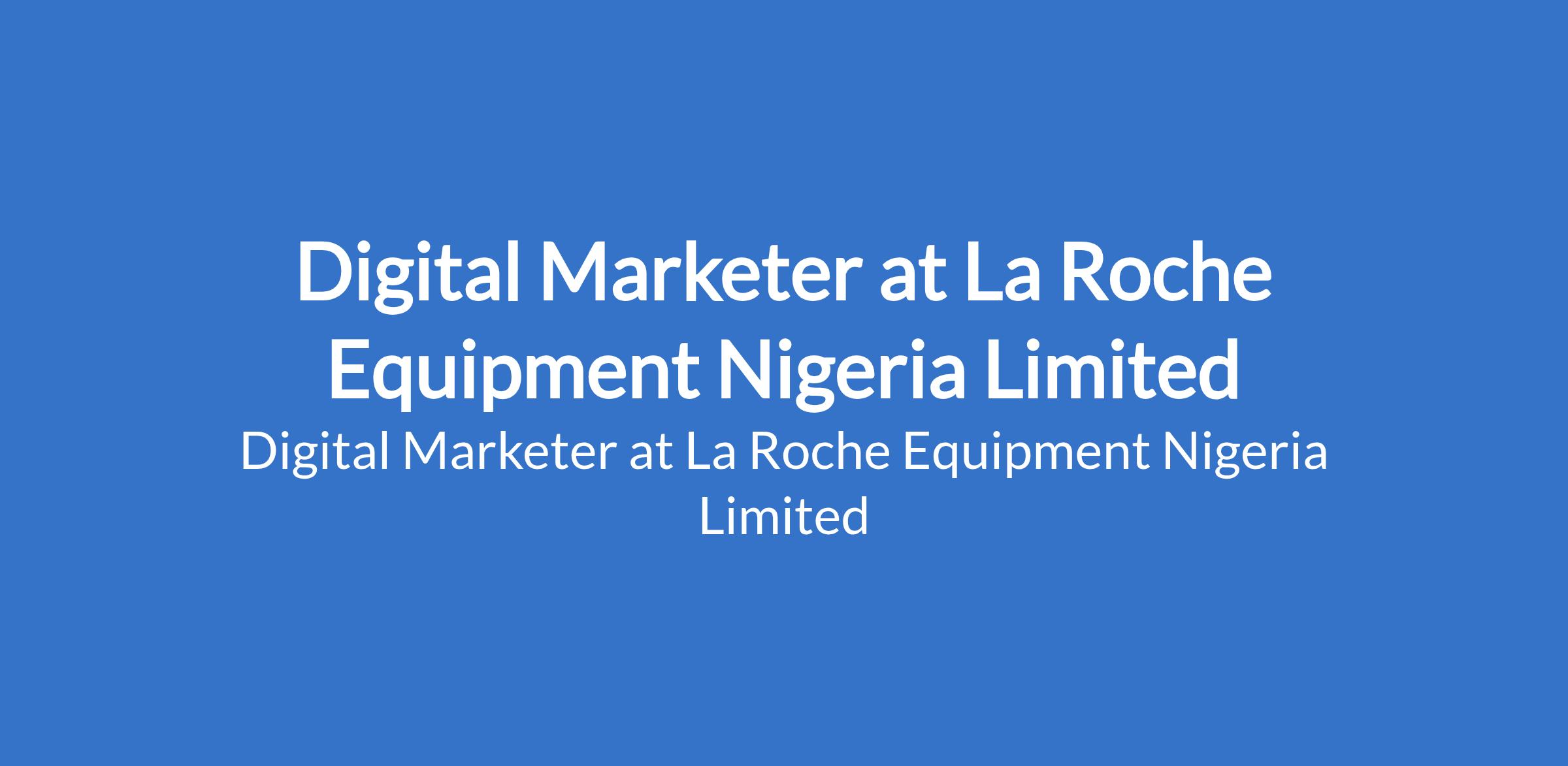 La Roche Equipment Nigeria Limited is recruiting to fill the position of: Digital Marketer. The position is located in Amuwo-Odofin, Lagos State. Interested candidates should possess a Bachelors Degree in Marketing, Communications, or a related field with a minimum of three (3) years of proven experience in digital marketing.