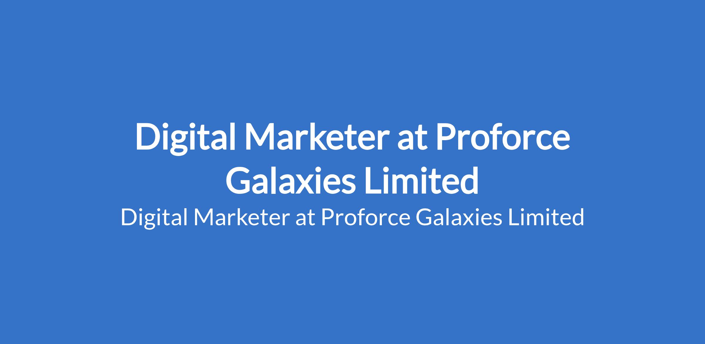 Proforce Galaxies Limited is recruiting to fill the position of: Digital Marketer. The position is located in Maitama, Abuja (FCT). Salary: N250,000 - N400,000 / month. Interested candidates should possess a Bachelors Degree in Marketing, Communications, Business, IT, or a related field with 3 5 years experience in Digital Marketing, preferably in technology or B2B sectors.