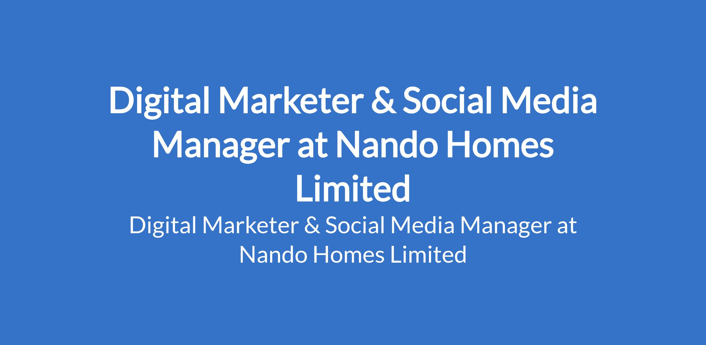 Nando Homes Limited is recruiting to fill the position of: Digital Marketer & Social Media Manager. The position is located in Abuja (FCT). Salary: N150,000 - N200,000 / Month. Interested candidates should possess relevant qualifications with proven experience in digital marketing and social media management especially in the real estate industry.