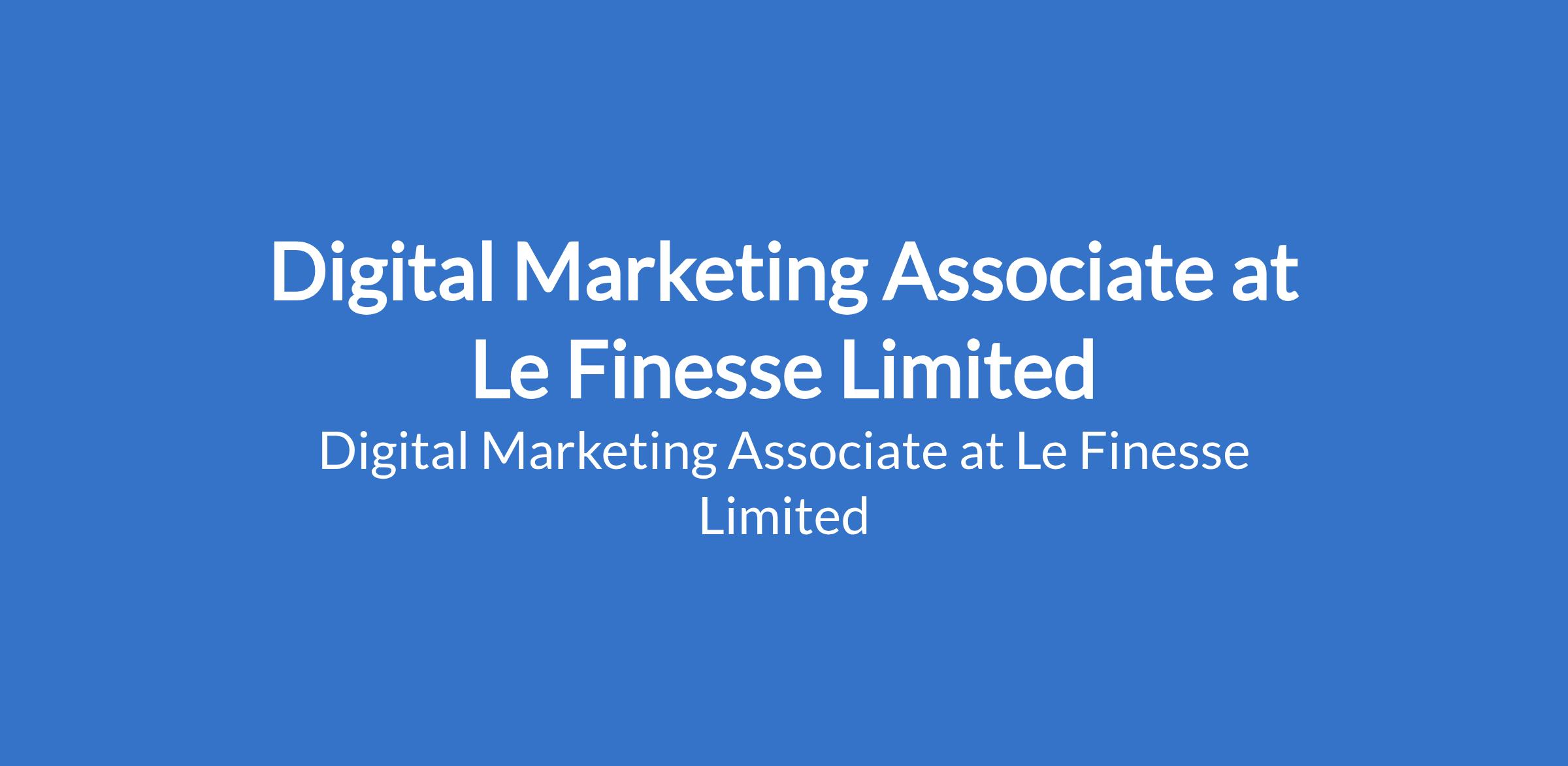 Le Finesse Limited is recruiting to fill the position of: Digital Marketing Associate. The position is located in Wuse II, Abuja (FCT). Interested candidate should possess a Bachelors Degree in Marketing, Communications, Business, or a related field with 4-5 years of hands-on digital marketing experience, preferably within financial services, professional services, B2B technology, or a similarly complex, regulated industry.
