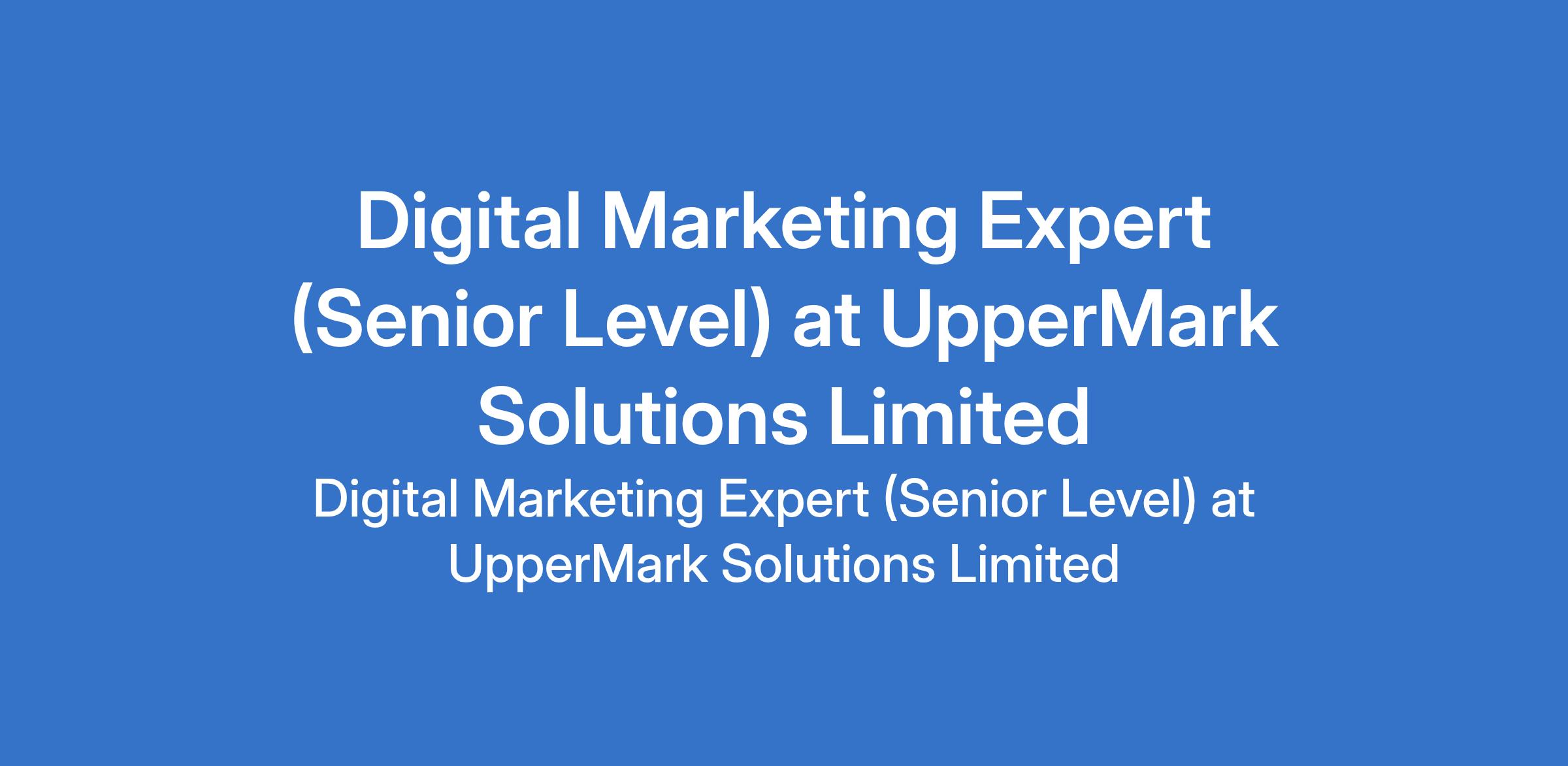 UpperMark Solutions Limited is recruiting to fill the position of: Digital Marketing Expert (Senior Level). The position is located in Surulere, Lagos State. Salary: N100,000 / month. Interested candidates should possess a Bachelors Degree in Marketing, Communications, or a related field with a minimum of 4 years in a professional digital marketing role (Agency experience is a significant plus).