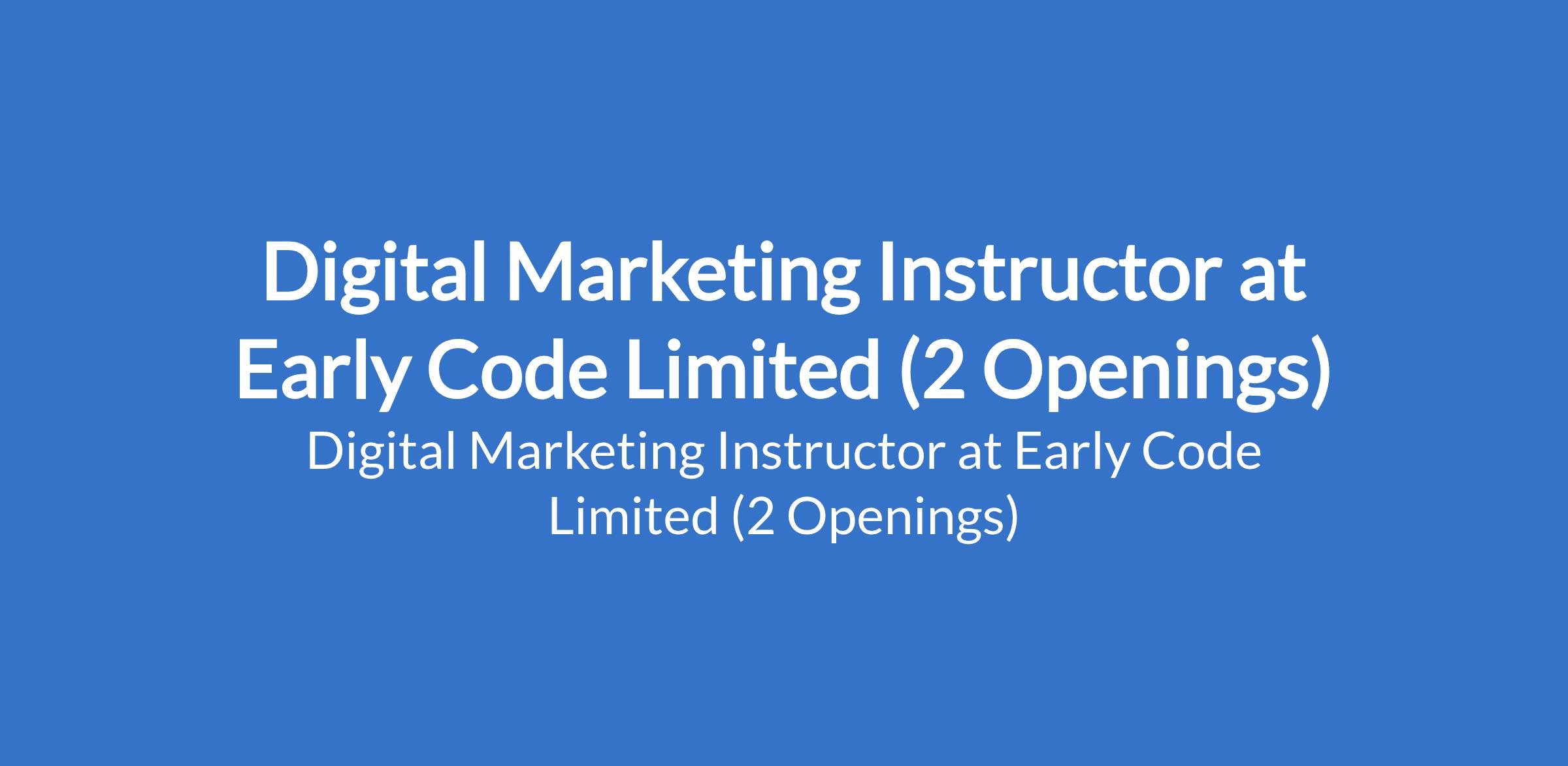 Early Code Limited is recruiting to fill the position of: Digital Marketing Instructor. The position is located in Nyanya and Kubwa - Abuja (FCT). Salary: N100,000 - N150,000 per month. Interested candidates should possess an HND / B.Sc Degree with proven experience in Digital Marketing (professional or personal projects).
