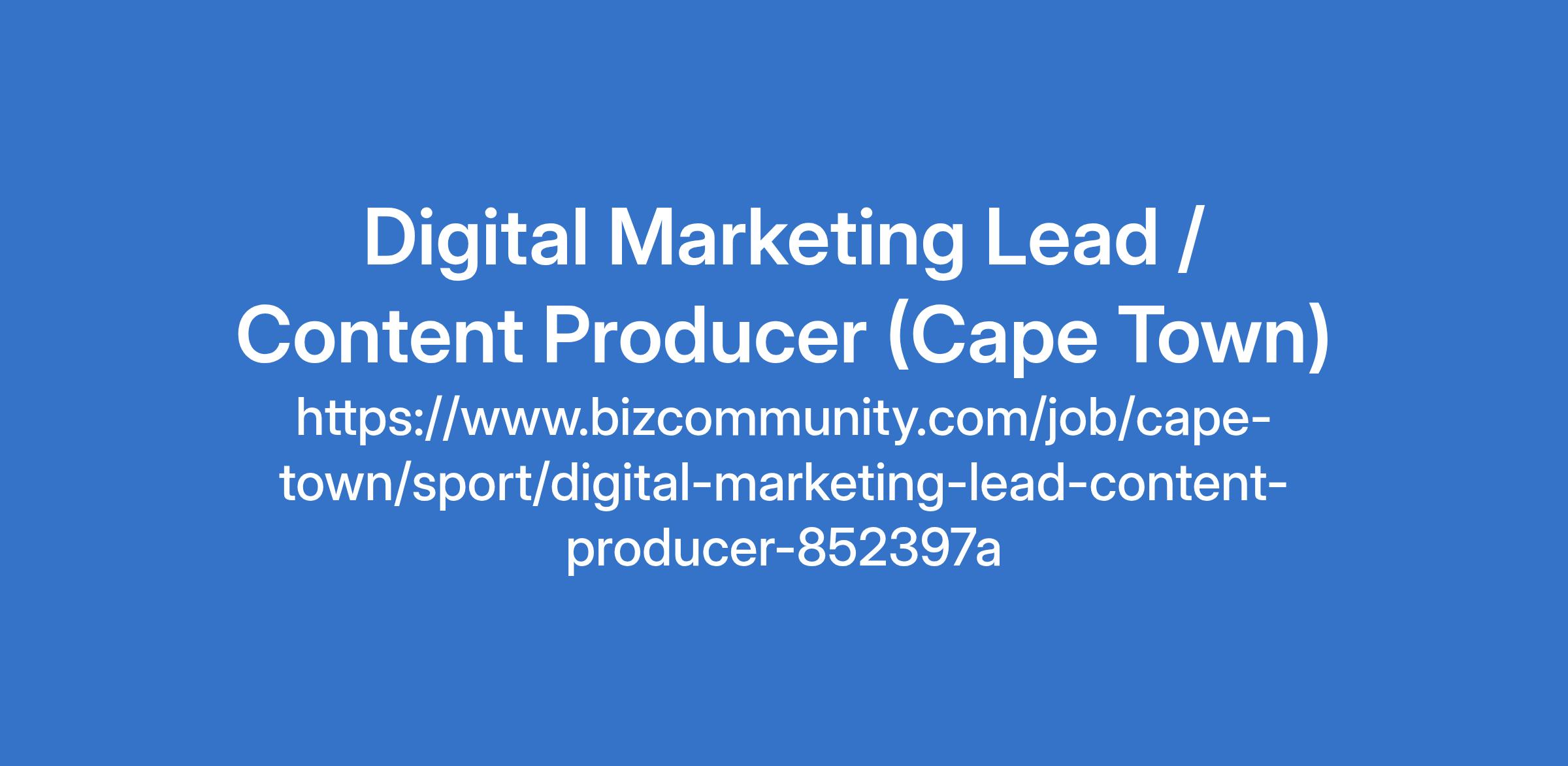 https://www.bizcommunity.com/job/cape-town/sport/digital-marketing-lead-content-producer-852397a