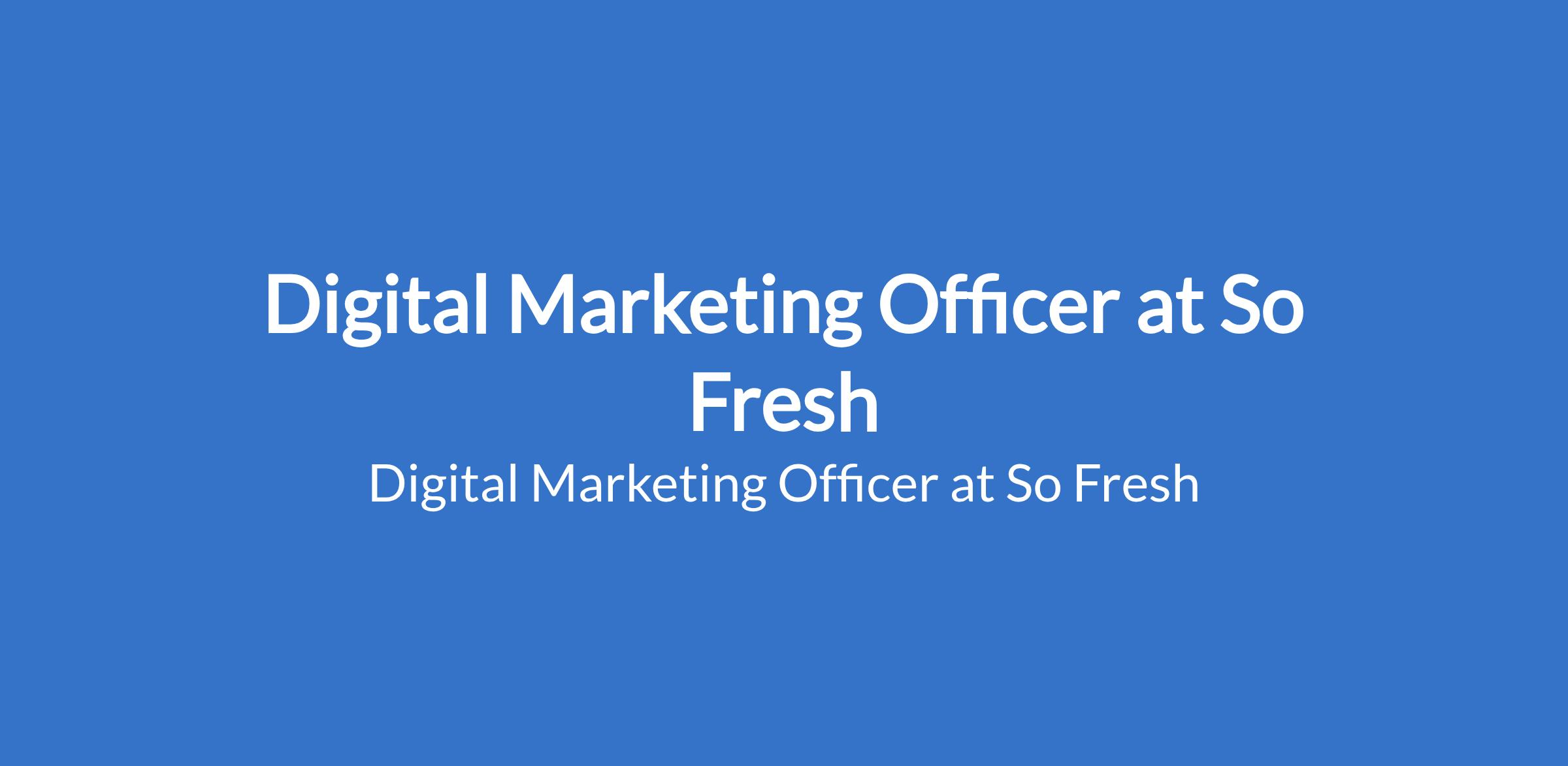 So Fresh is recruiting to fill the position of: Digital Marketing Officer. The position is located in Opebi, Ikeja - Lagos State. Salary: N350,000 N500,000 monthly. Interested candidates should possess a BSc / BA Degree in Marketing, Communications or relevant field with 2 - 3 years of digital marketing experience.