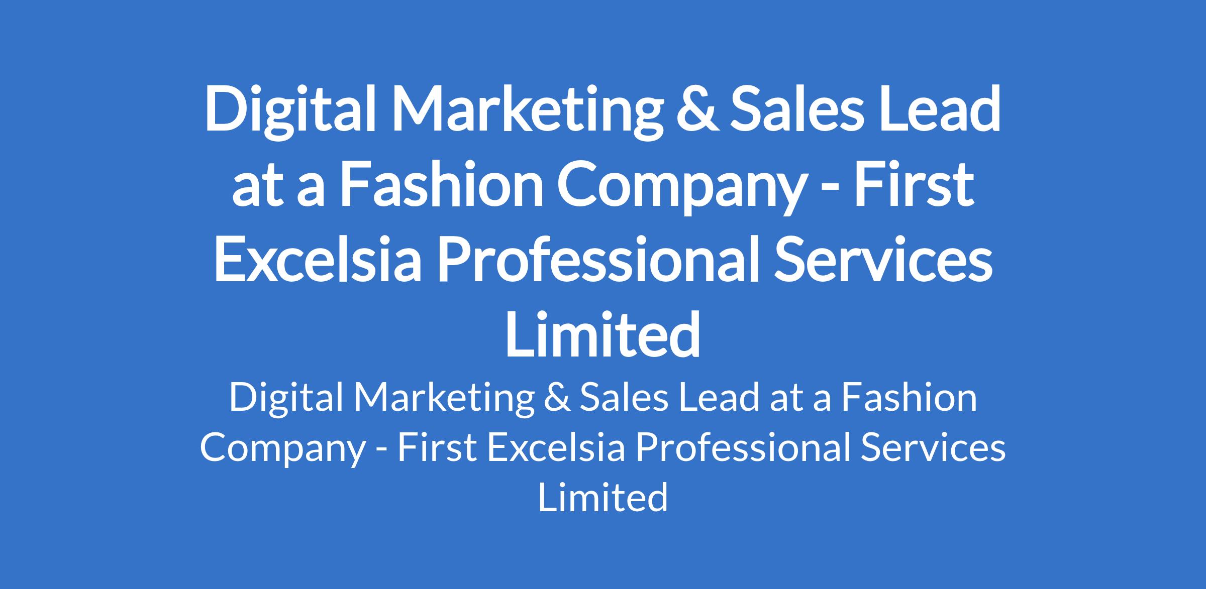 First Excelsia Professional Services Limited - Our client, a Fashion Company is recruiting to fill the position of: Digital Marketing & Sales Lead. The position is located in Surulere, Lagos State. Salary: N2,400,000 / Annum. Interested candidates should possess a BSc / HND in Marketing, Business Administration, Communications, or related fields with a minimum of 2 years experience in sales & marketing with proven results.