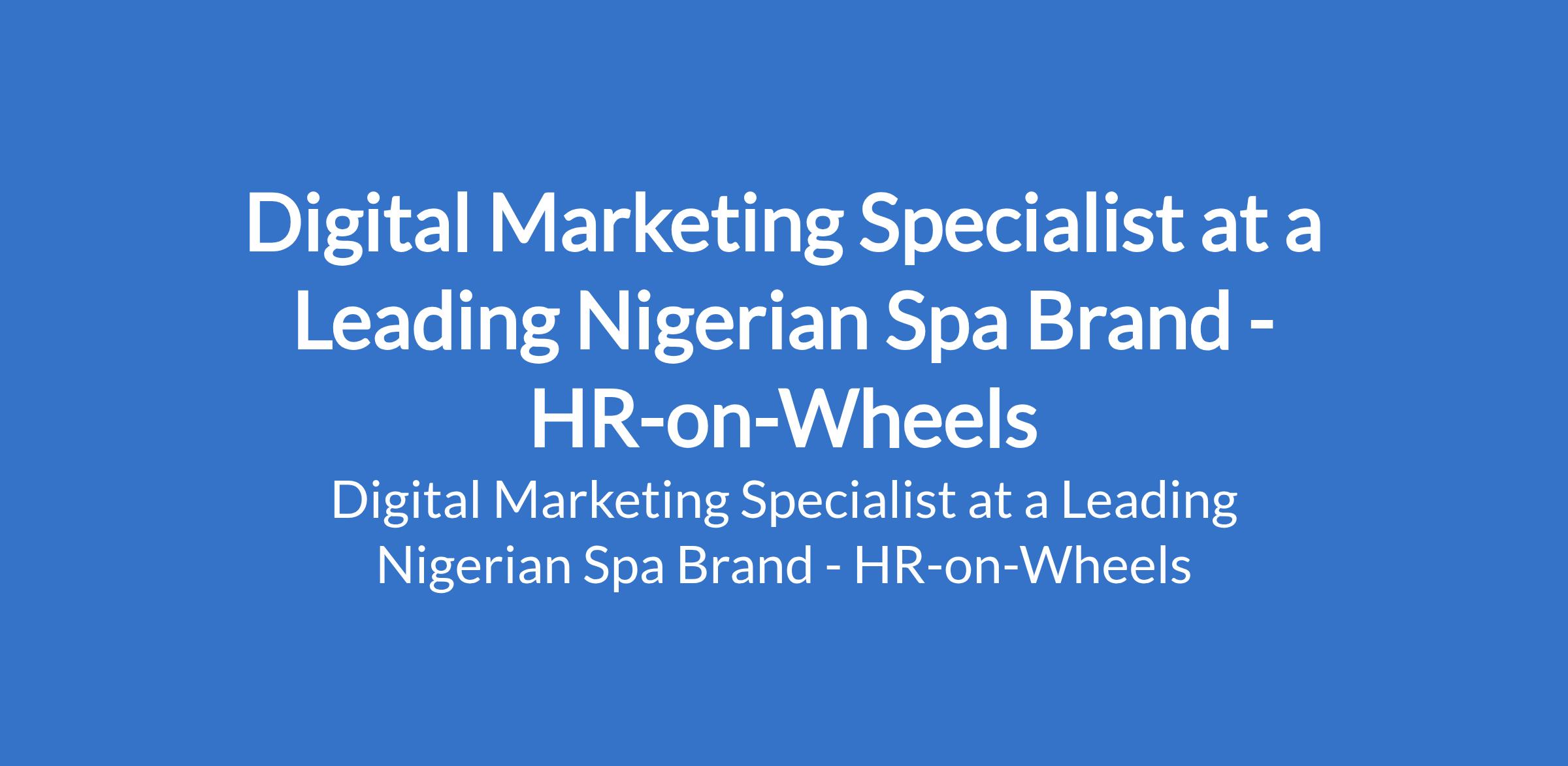 HR-on-Wheels - Our client, a leading Nigerian spa brand is recruiting to fill the position of: Digital Marketing Specialist. The position is located in Ikoyi, Lagos State. Salary: N250,000 monthly. Interested candidates should possess a Bachelors Degree in Marketing or a related field with 2 - 4 years experience in digital marketing.