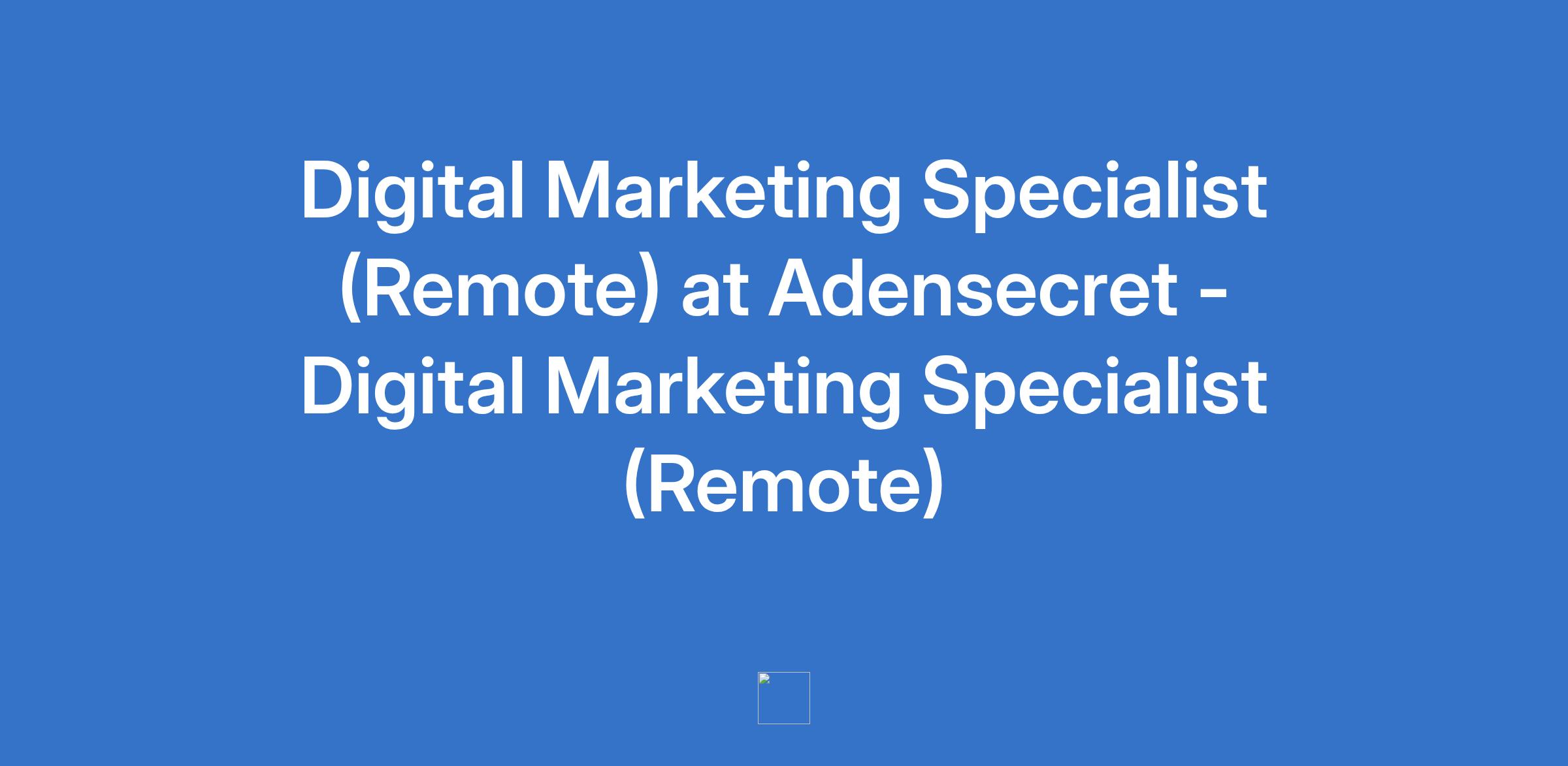 Digital Marketing Specialist (Remote) at Adensecret - Digital Marketing Specialist (Remote)