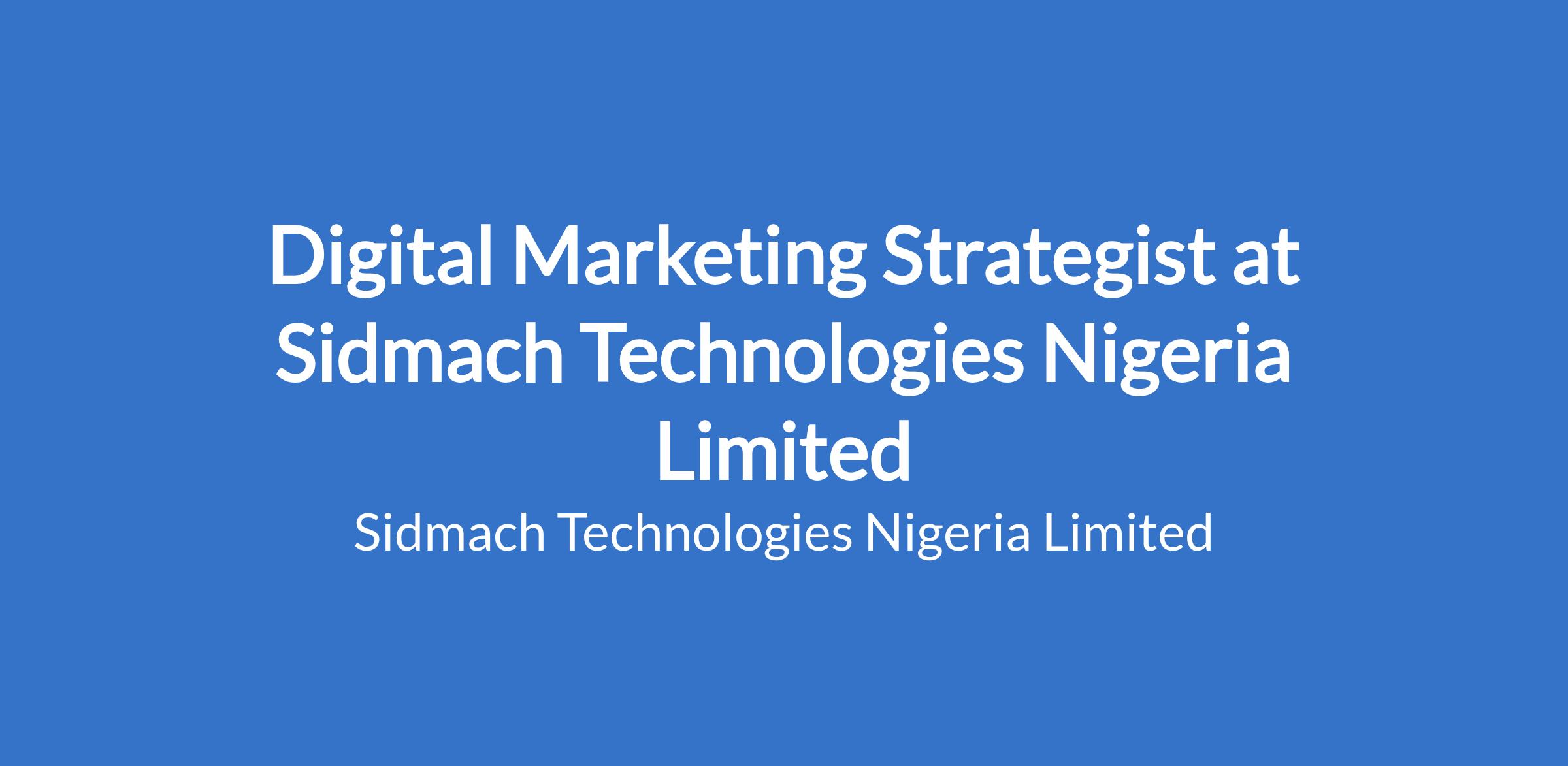 Digital Marketing Strategist at Sidmach Technologies Nigeria Limited