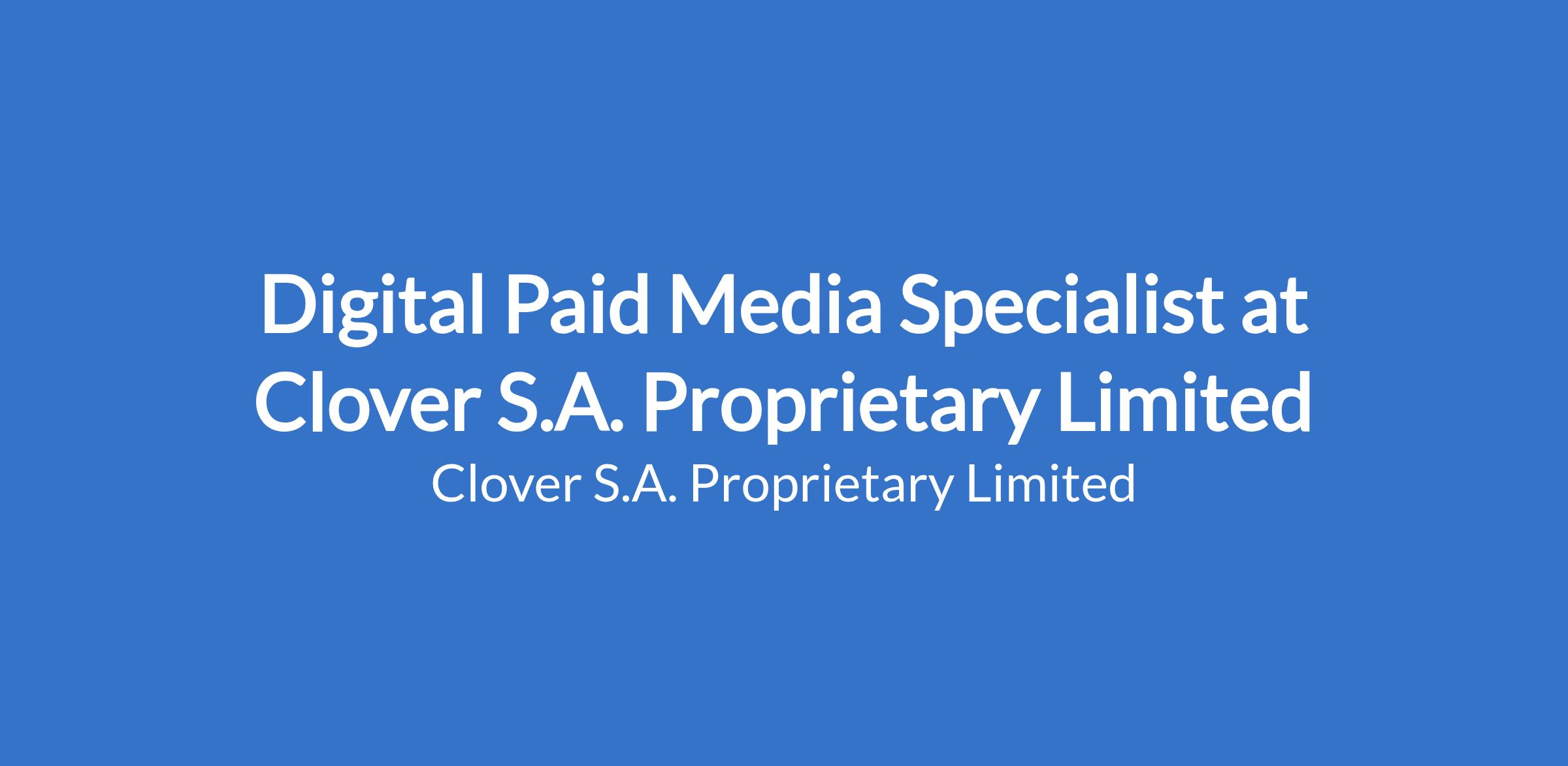 Clover is looking for a Digital Paid Media Specialist to ensure paid media projects are successfully planned and executed while contributing to the growth of the company via paid media strategies. This position is based at Clover Head Office in Roodepoort.