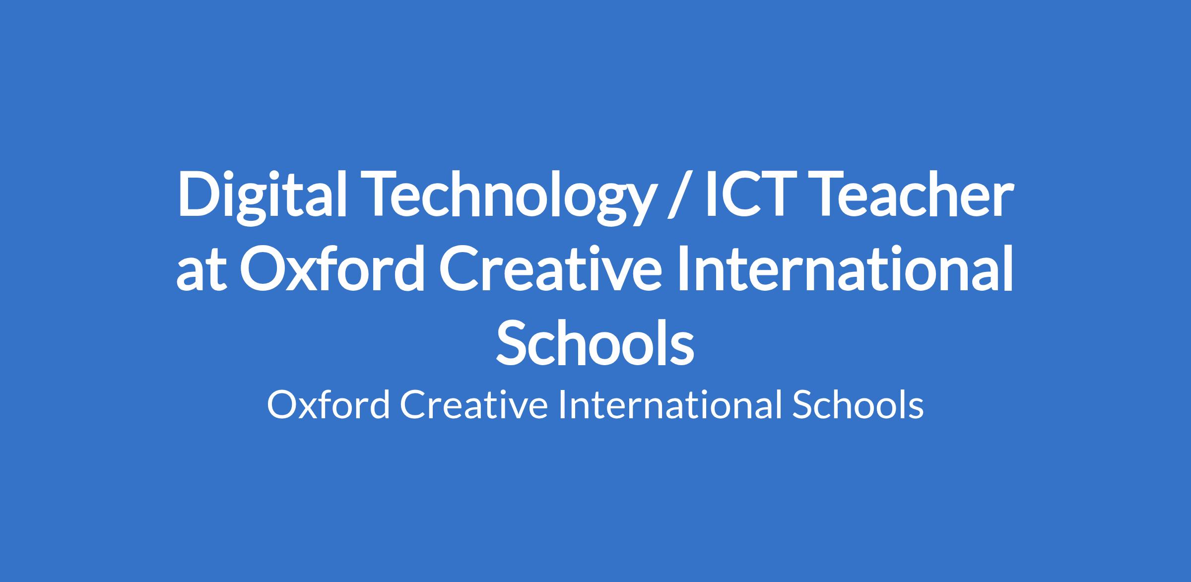 Digital Technology / ICT Teacher at Oxford Creative International Schools