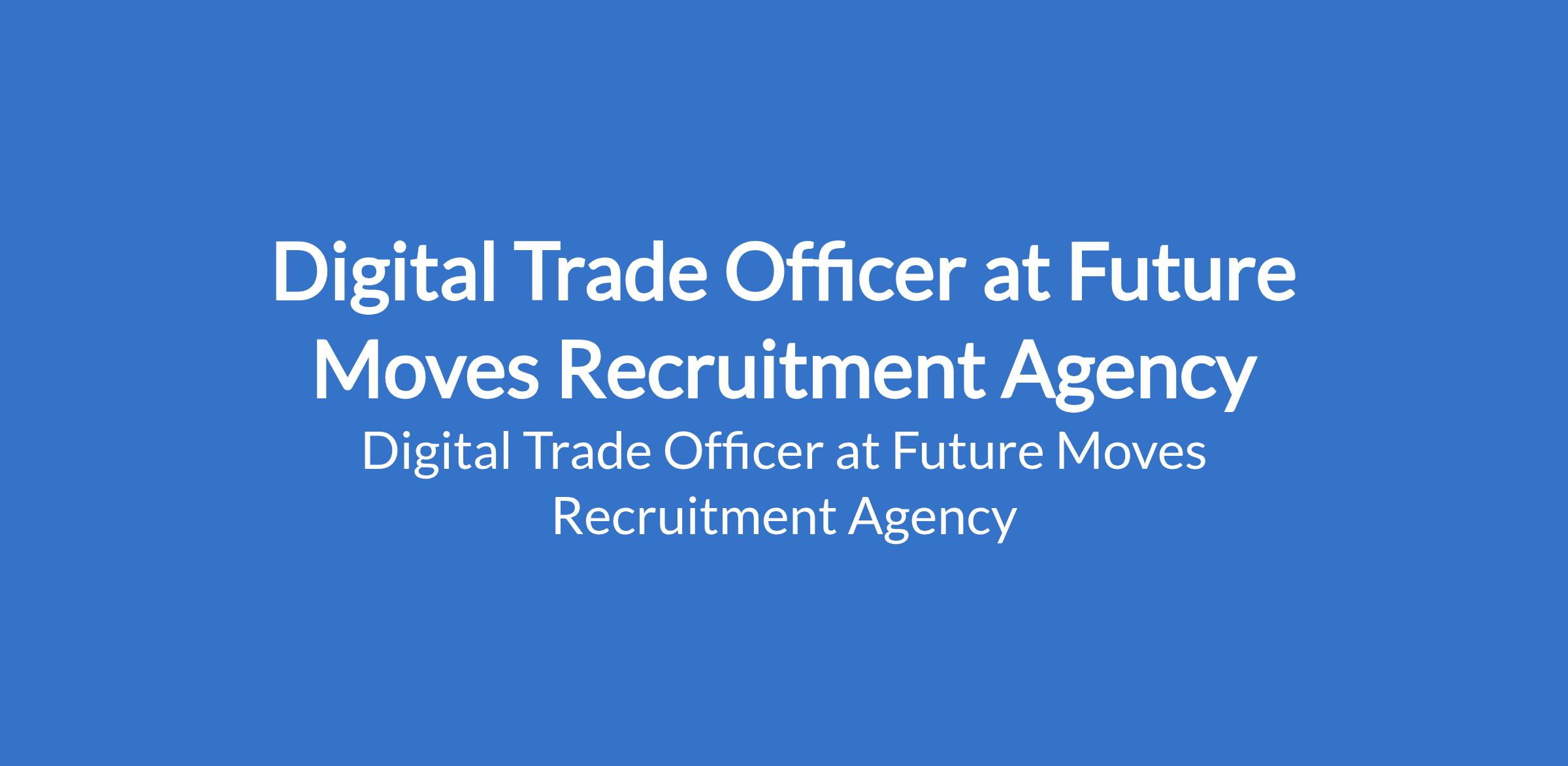 Future Moves Recruitment Agency is recruiting to fill the position of: Digital Trade Officer. The position is located in Festac, Lagos State. Salary: N100,000 - N150,000 monthly. Interested candidates should possess a minimum of OND in Finance, Business Administration, Economics, or related fields with 1-2 years experience.