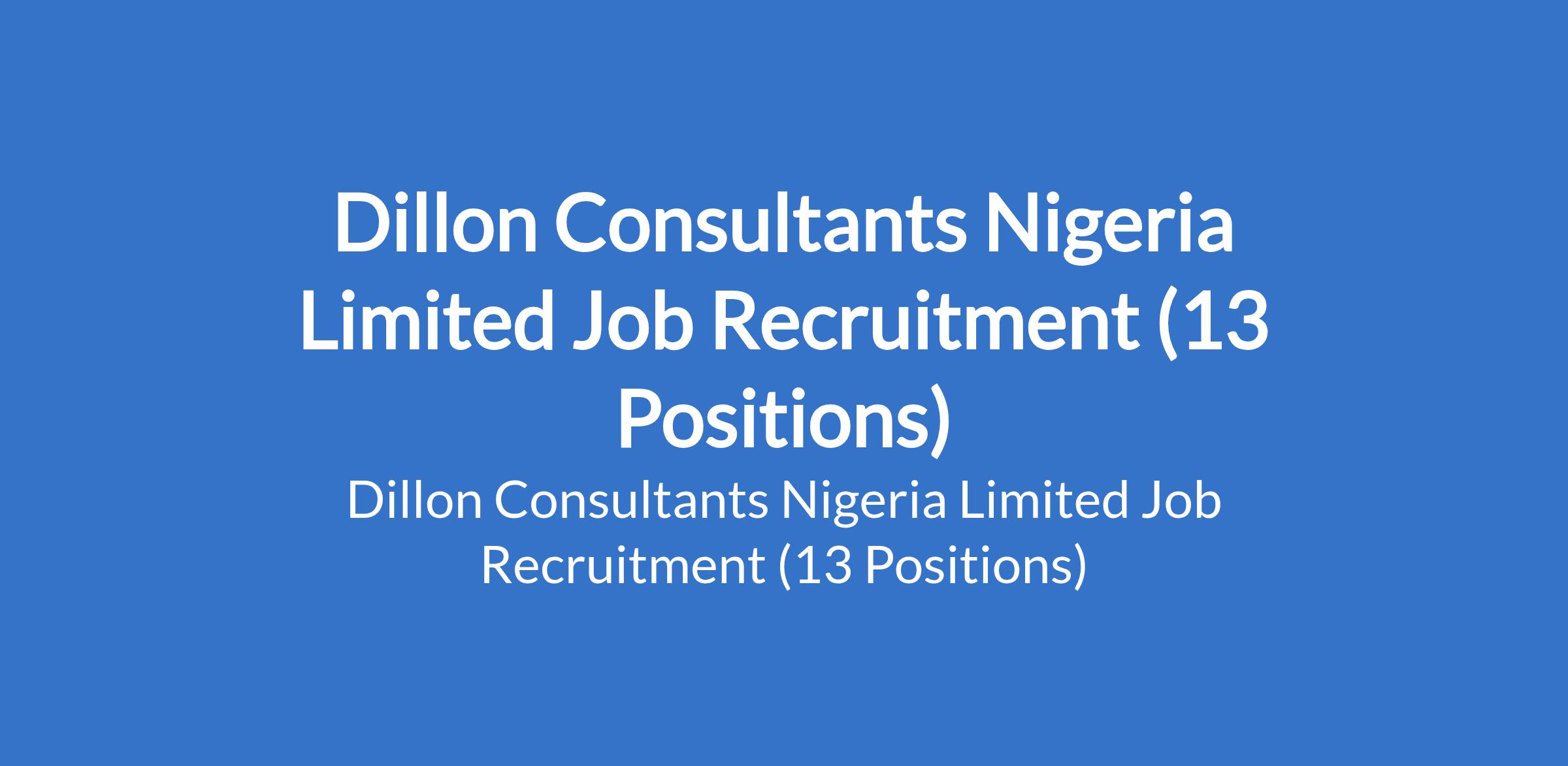 Dillon Consultant Nigeria Limited is recruiting suitably qualified candidates to fill the following positions in Lagos State: Electrician, Quantity Surveyor, Scaffolder, Painter, Electrical Engineer, Tiler, Structural Engineer, Carpenter, Bricklayer, Elevator / Lift Technician, GraphicDesigner, Architect, and Security Guard.