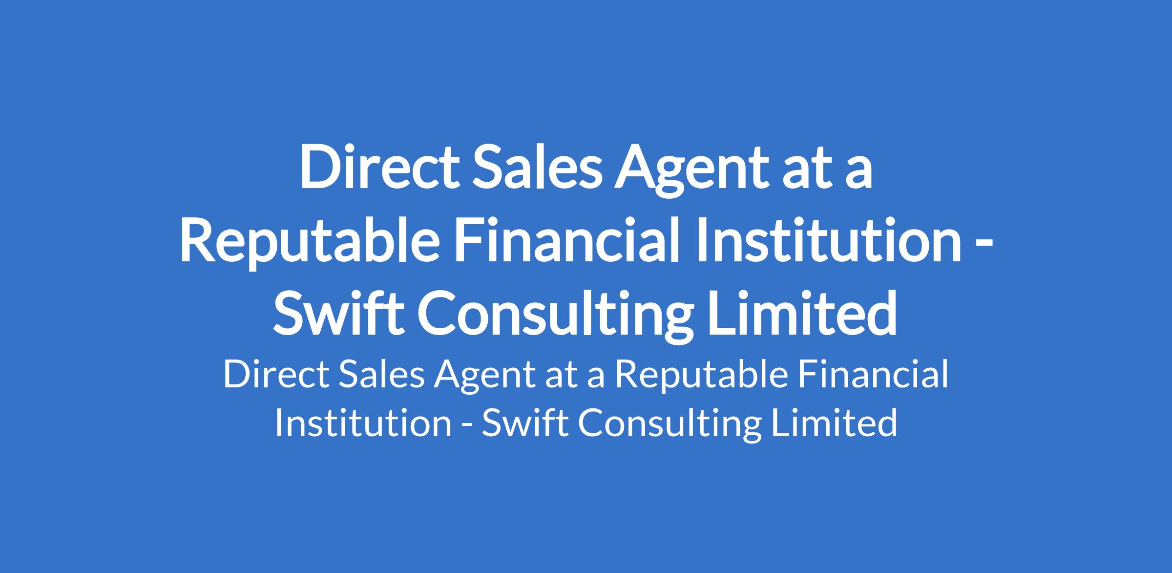 Swift Consulting Limited is recruiting to fill the position of: Direct Sales Agent. The position is located in Apapa, Lagos State. Interested candidates should possess a minimum of OND / HND / B.Sc. in any discipline with previous experience in sales, marketing, or financial services, which is an advantage.