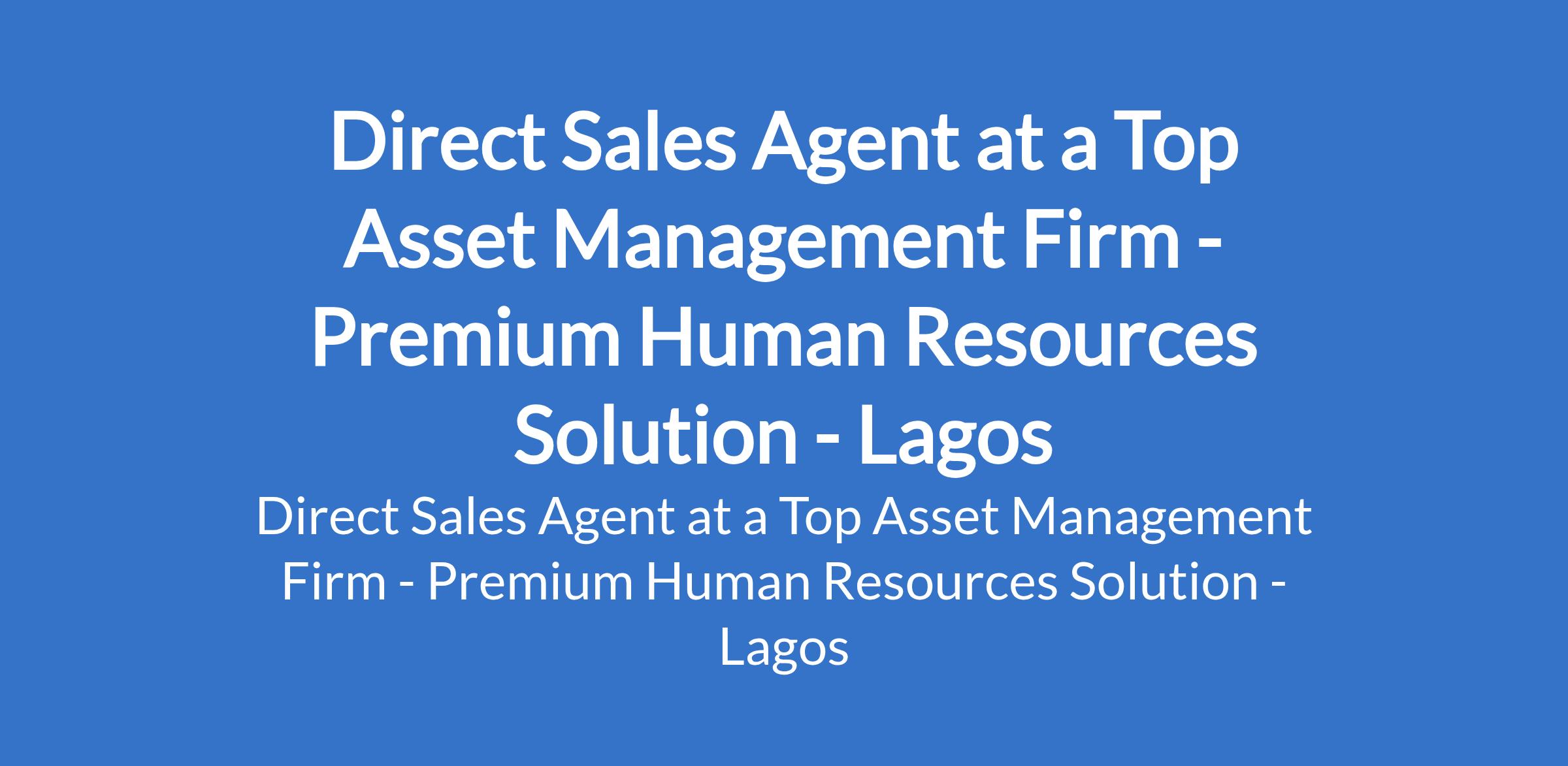 Premium Human Resources Solution is recruiting to fill the position of: Direct Sales Agent. The position is located in Victoria Island, Lagos State. Salary: N75,000 monthly. Interested candidates should possess an OND / HND / B.Sc. Degree with a minimum of 1 year of Sales experience.