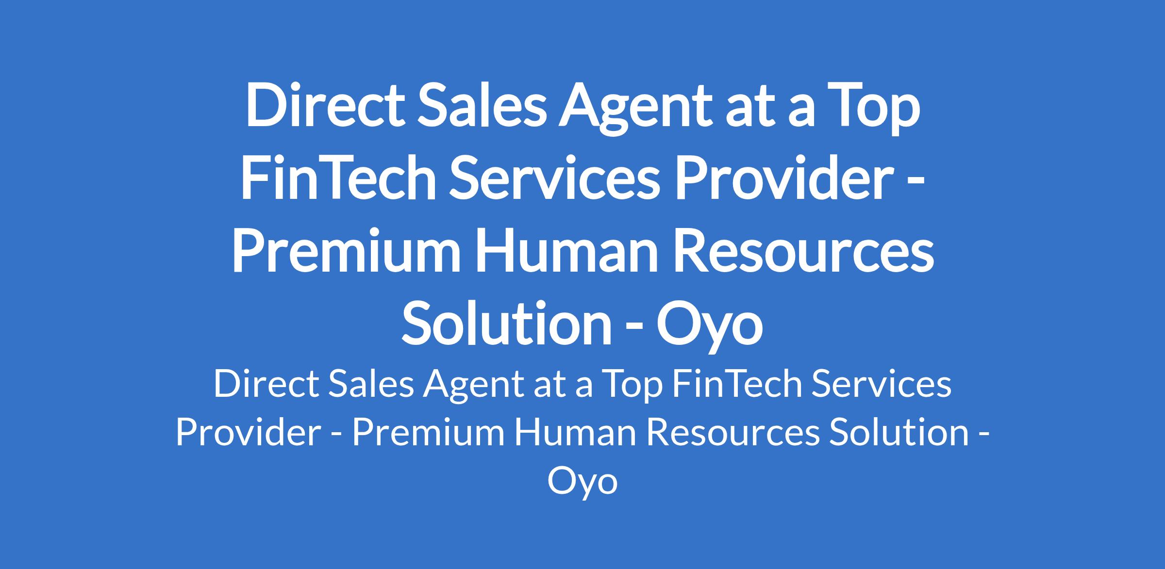Premium Human Resources Solution - Our client, a Top FinTech Services Provider is recruiting to fill the position of: Direct Sales Agent. The position is located in Ibadan, Oyo State. Monthly salary: N200,000. Interested candidates should possess a Higher National Diploma (HND) and Bachelors Degree in Business Administration, Sales, Marketing, Economics, Information Technology,or any relevant field with 1 - 3 years of relevant sales or field marketing experience, preferably in fintech, financial services, or telecommunications.