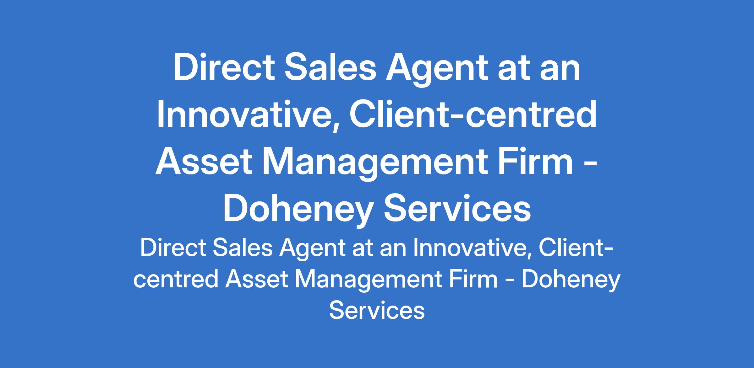 Doheney Services - Our client, an innovative, client-centred asset management firm is recruiting to fill the position of: Direct Sales Agent. The position is located in Lagos State. Salary: N120,000 monthly. Interested candidates should possess an OND qualification with 1 - 3 years experience.
