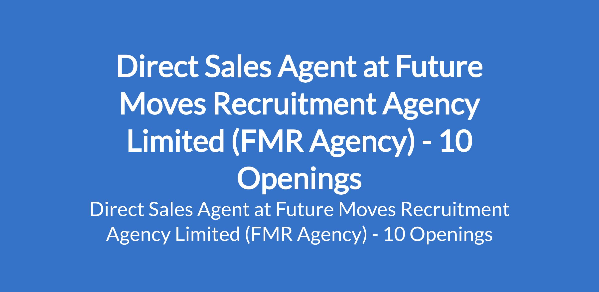 Future Moves Recruitment Agency Limited (FMR Agency) is recruiting to fill the position of: Direct Sales Agent. The position is located in Lekki, Lagos State. Salary: N150,000 monthly. Interested candidates should possess a minimum of OND / HND / B.Sc Degree in any discipline with 12 years of direct sales experience (FinTech, banking, telecoms, FMCG, or related industries preferred).