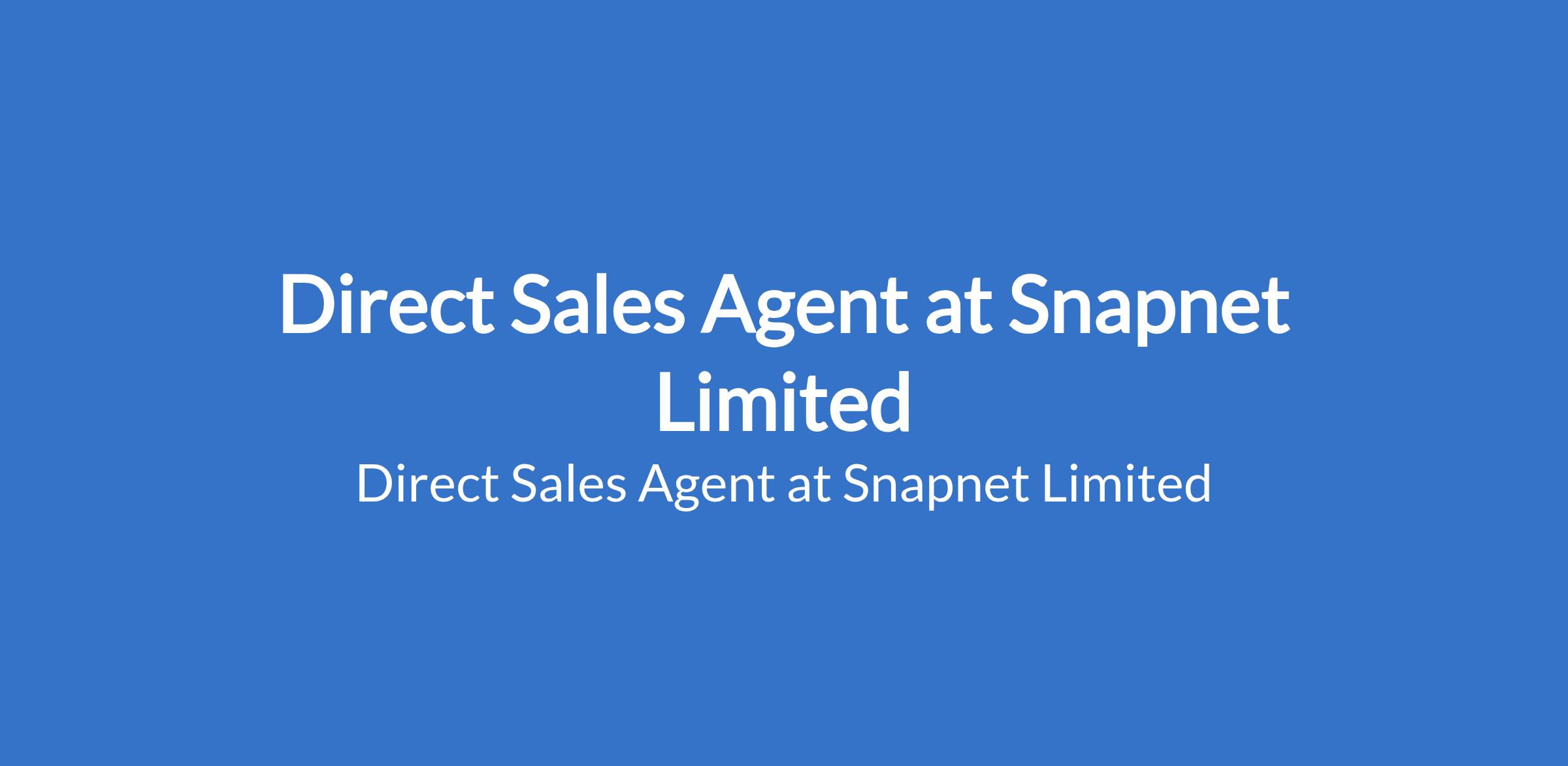 Snapnet Limited is recruiting to fill the position of: Direct Sales Agent. The position is located in Lekki, Lagos State. Salary: N100,000 monthly. Interested candidates should possess an OND, HND, or B.Sc. in any discipline with 13 years of demonstrable B2B or field sales experience.