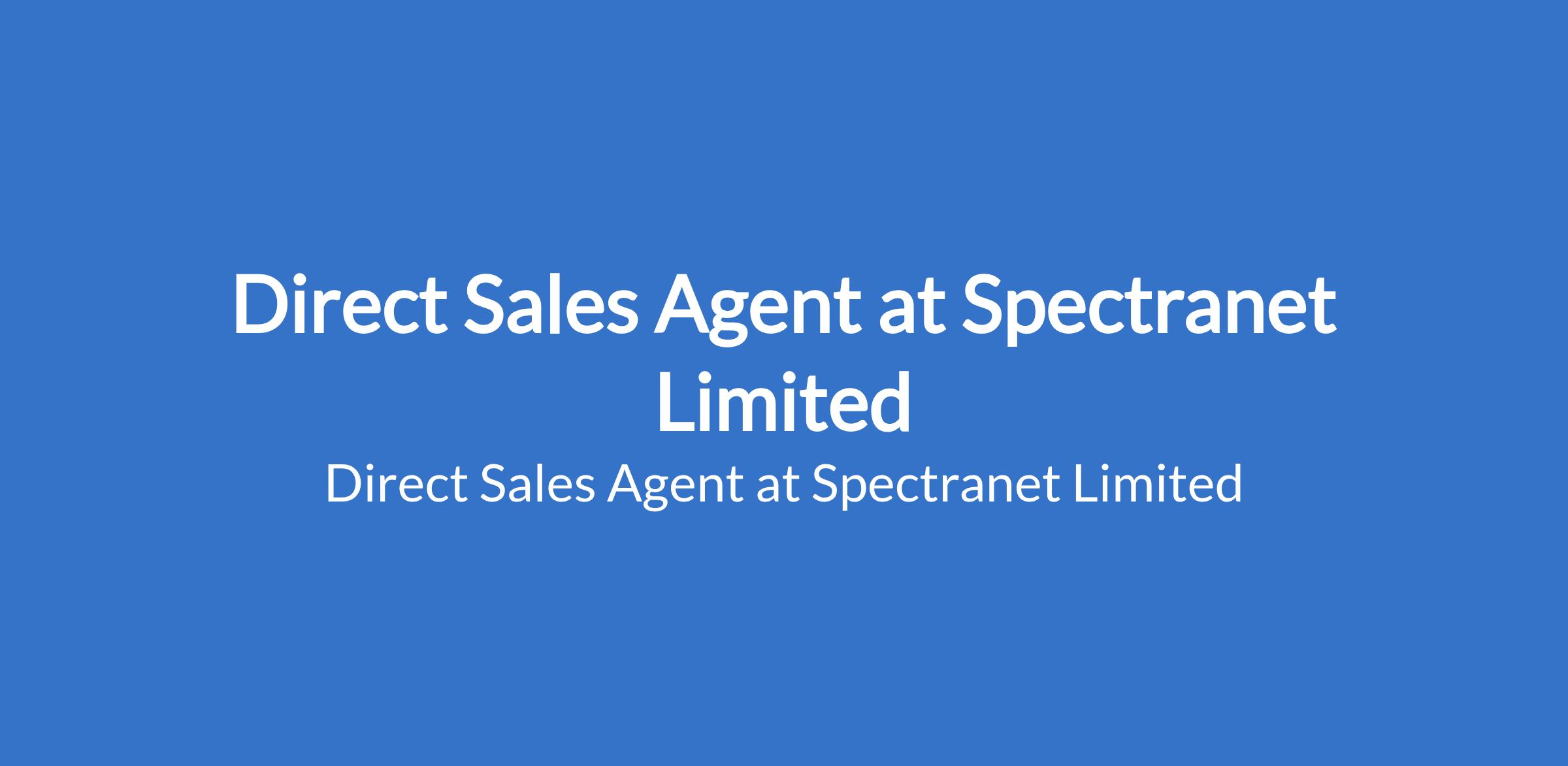 Spectranet Limited is recruiting to fill the position of: Direct Sales Agent. The position is located in Ikeja Computer Village, Berger - Lagos State. Interested candidates should possess minimum qualification of an OND or S.S.C.E, and must live within the job locations or environs.