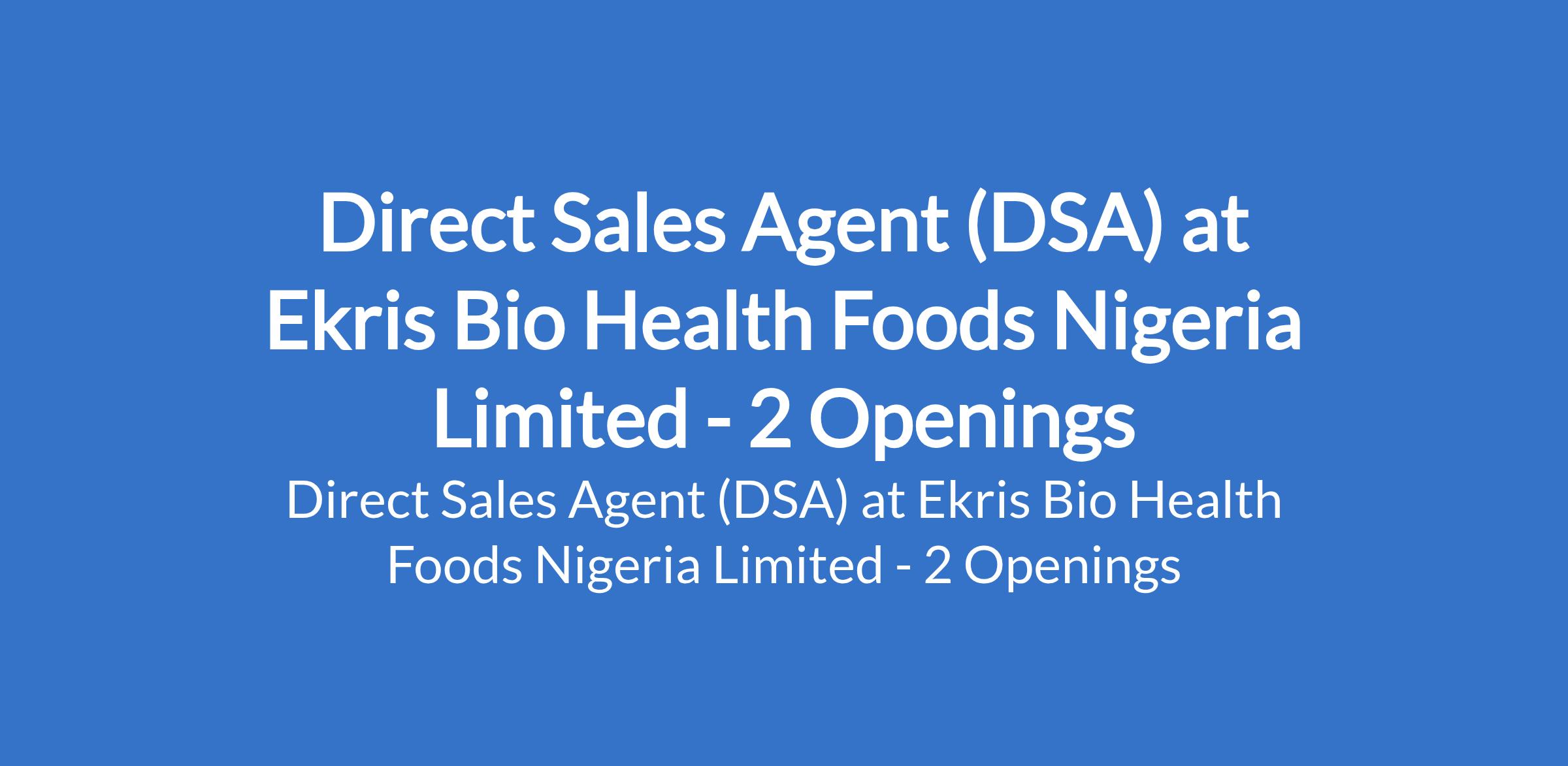 Ekris Bio Health Foods Nigeria Limited is recruiting to fill the position of: Direct Sales Agent (DSA). The position is located in Mainland/Island, Lagos State. Salary: N100,000 - N120,000 / month. Interested candidates should possess a minimum of OND / NCE / HND / Bachelors Degree in any discipline with previous experience in direct sales, field marketing, brand activation, or customer engagement is an advantage.