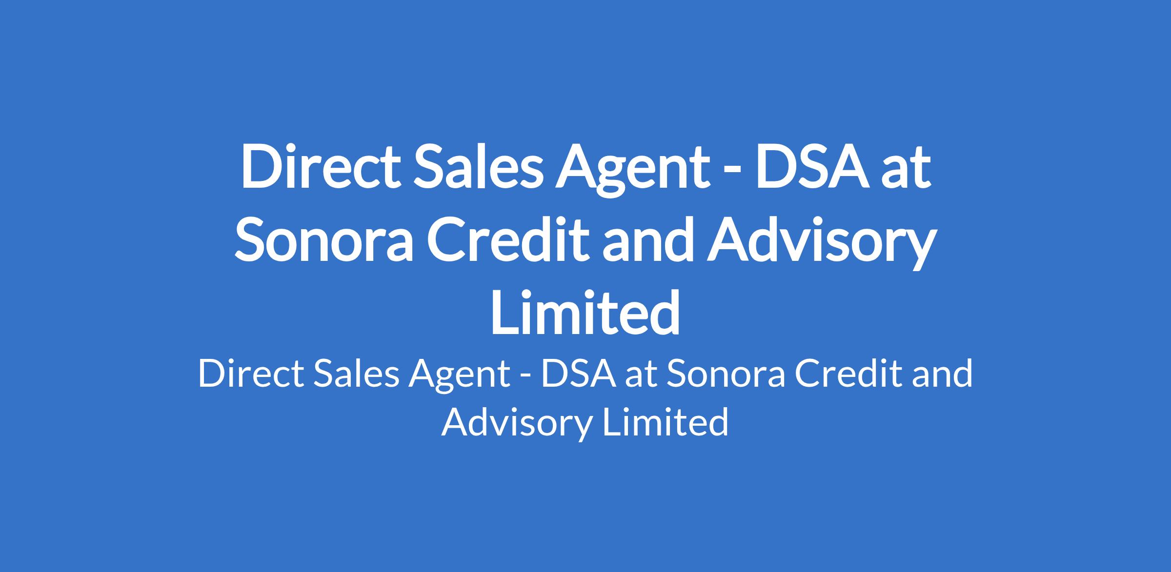 Sonora Credit and Advisory Limited is recruiting to fill the position of: Direct Sales Agent - DSA. Salary: N80,000 per month. The position is located in Bauchi, Bayelsa, Ekiti, Enugu, Kaduna, Kano, Lagos, Ogun, Oyo, Rivers, and Yobe States. Interested candidates should possess relevant qualifications with experience.