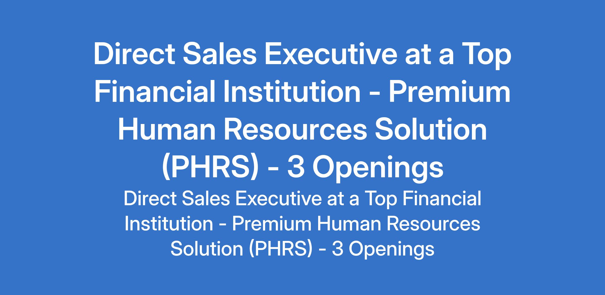 Premium Human Resources Solution (PHRS) - Our client, a top financial institution is recruiting to fill the position of: Direct Sales Executive. The position is located in Abuja (FCT), Lagos, and Oyo States. Interested candidates should possess relevant qualifications with experience.