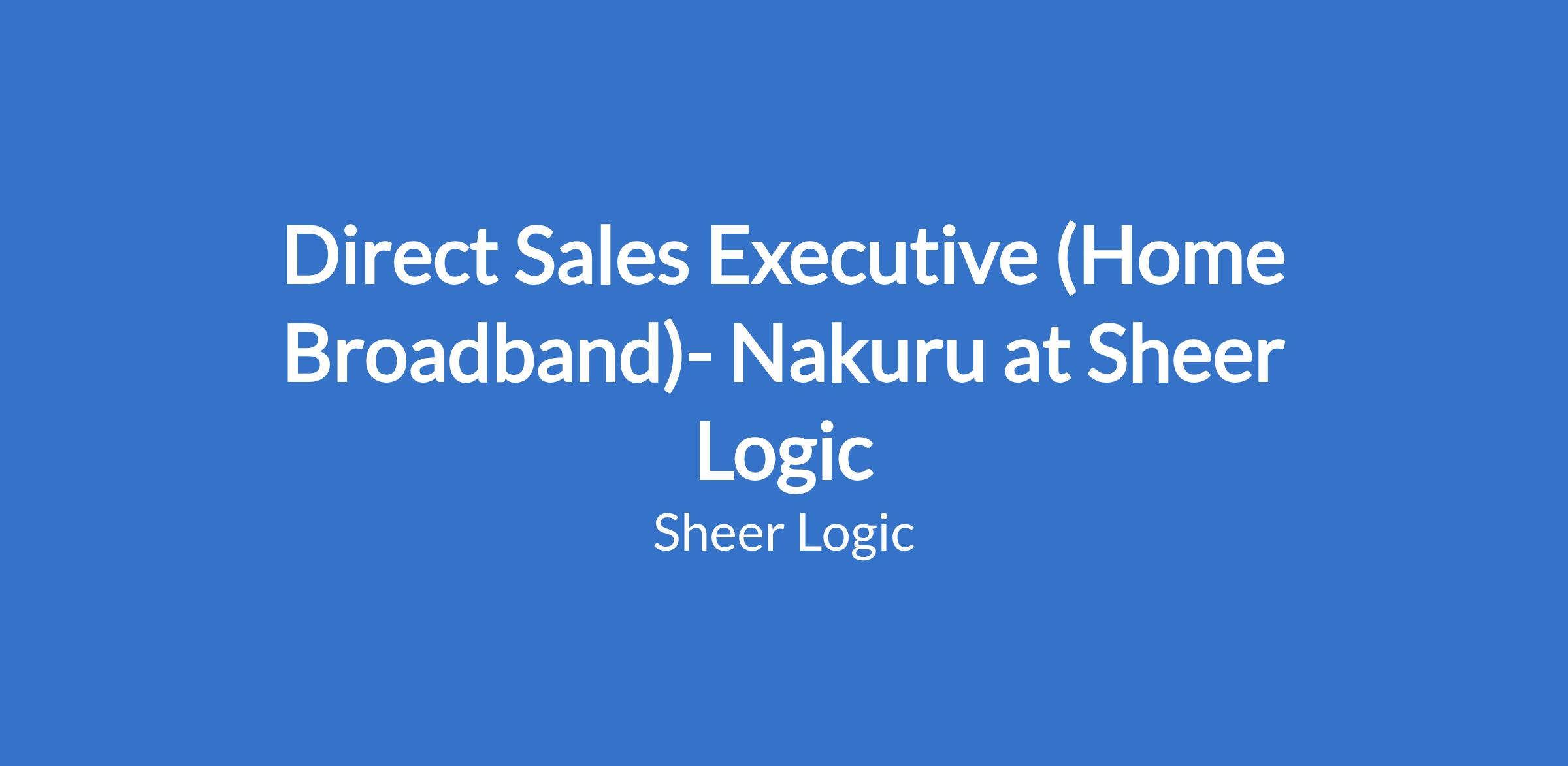 Direct Sales Executive (Home Broadband)- Nakuru at Sheer Logic