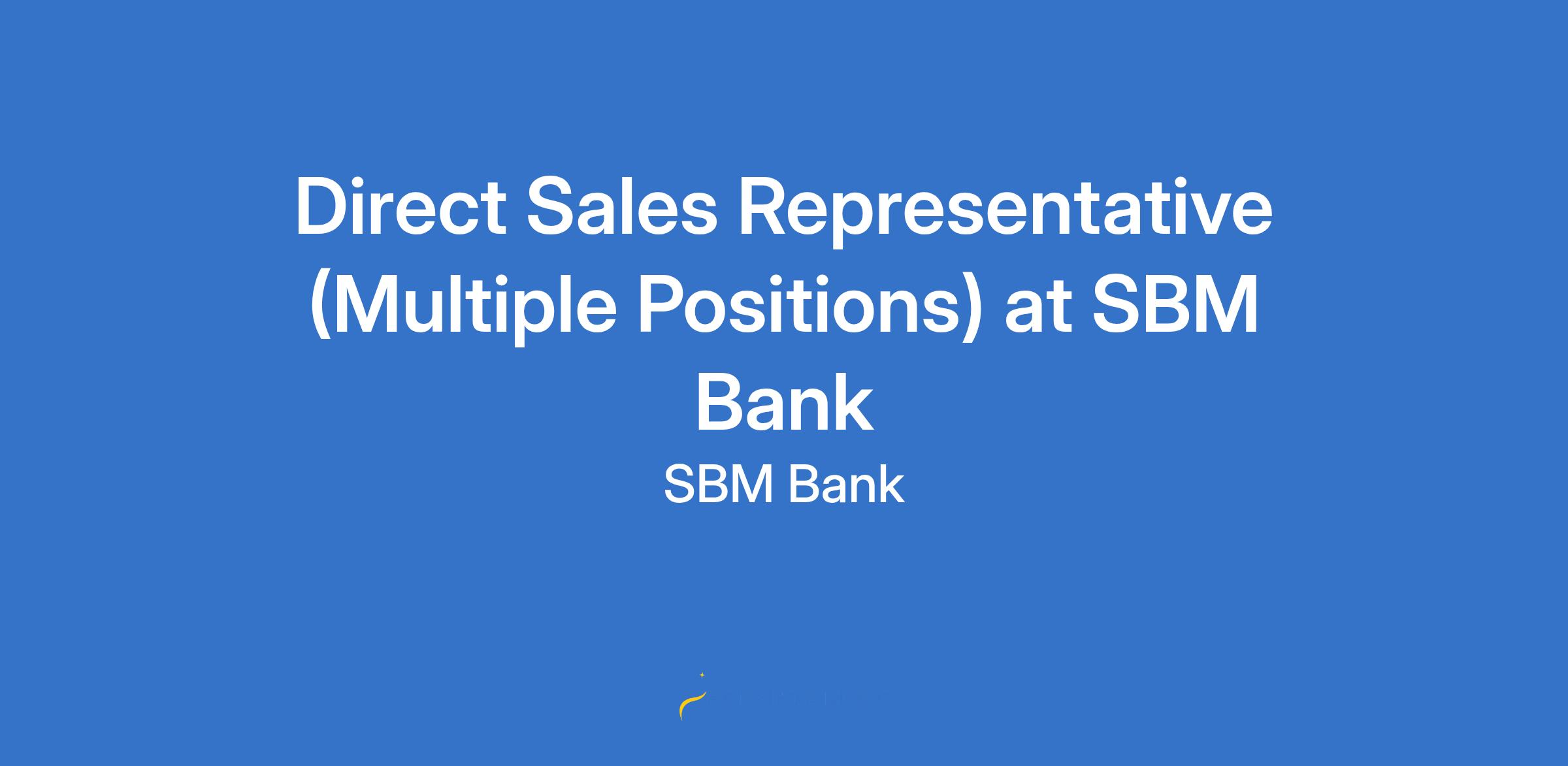 Direct Sales Representative (Multiple Positions) at SBM Bank