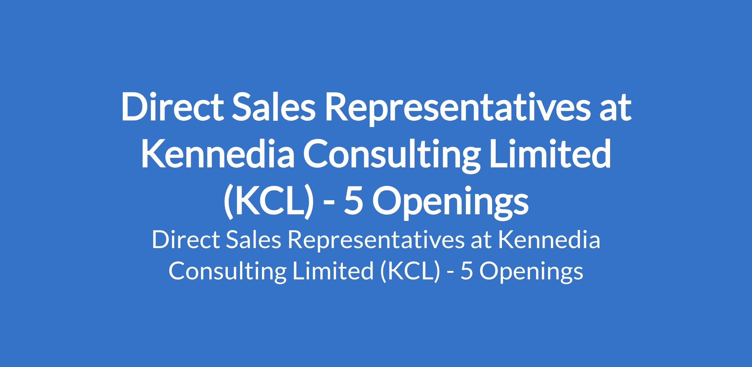 Kennedia Consulting Limited (KCL) is recruiting to fill the position of: Direct Sales Representative. The position is located in Marina, Iganmu, St. Gregory, Idoluwo, and City Hall Lagos State. Salary: N107,000 Monthly. Interested candidates should possess a B.Sc /HND in any discipline and must not be above the age of 28 years.