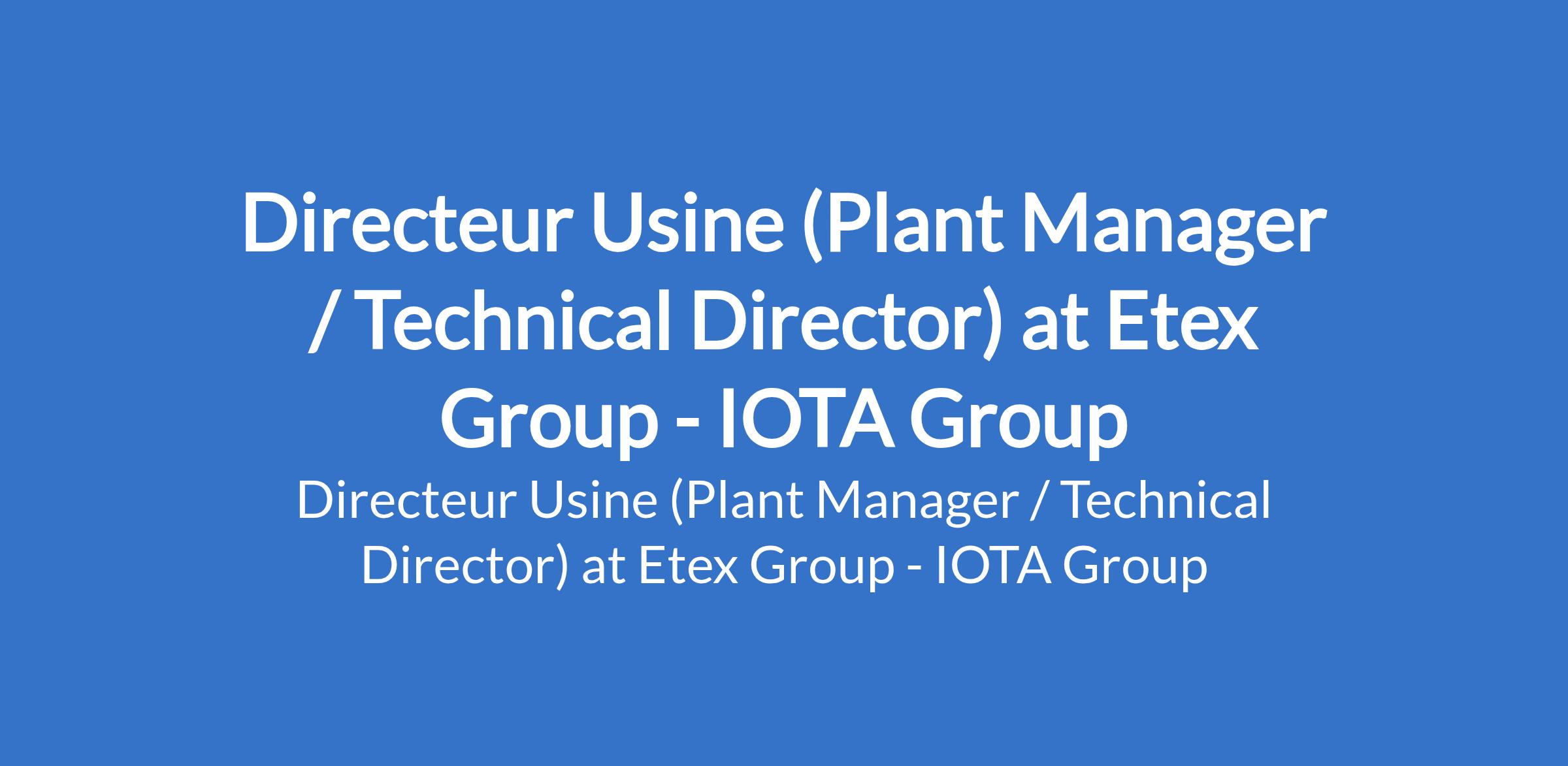 Directeur Usine (Plant Manager / Technical Director) at Etex Group - IOTA Group