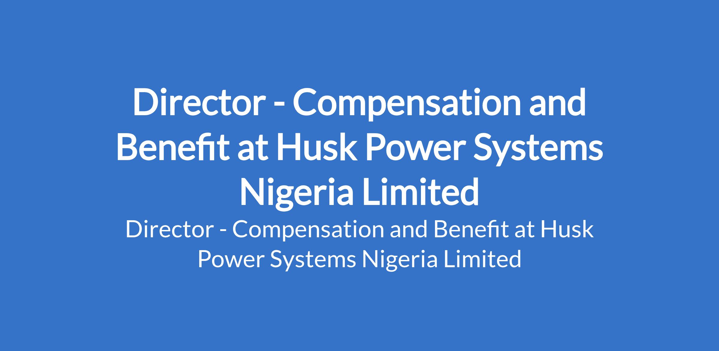 Husk Power Systems Nigeria Limited is recruiting to fill the position of: Director - Compensation and Benefit. The position is located in Abuja (FCT). Interested candidates should possess a Masters Degree in Human Resources, Business Administration or related fields with 12+ years of progressive experience in Compensation & Benefits, HR Compliance, or Total Rewards roles.