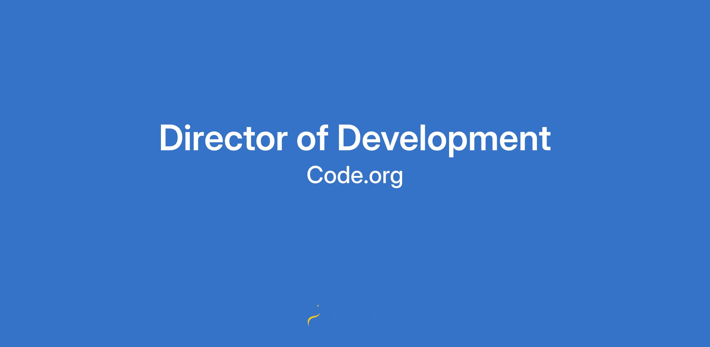 COMPANY PROFILECode.org is an education innovation nonprofit dedicated to the vision that every student in every school has the opportunity to learn about artificial intelligence (AI) and computer science (CS) as part of their core K-12 education. We increase participation in AI+CS education by reaching students of all backgrounds where they are â at their skill level, in their schools, and in ways that inspire them to keep learning, with a focus on increasing participation by young women and students from other underrepresented groups. The leading provider of K-12 AI+CS education curriculum across the globe, Code.org also organizes the annual Hour of AI campaign, building on the legacy of the Hour of Code, which has engaged more than 15% of all students in the world!A unifying approach in a divided worldCode.org's global role in the K-12 computer science movement is only possible because we use a unifying approach across diverse and often divided stakeholders. At a time of increasing polarization, the idea of increasing opportunity for students unites people from across the political spectrum. Code.org's team members, students, teachers, and supporters have diverse and diverging view points, and they are all welcome in our mission. Read more.JOB SUMMARYThe Director of Development is a key contributor on Code.orgâs Revenue and Development team, responsible for stewarding and growing our largest existing donor relationships across individual
