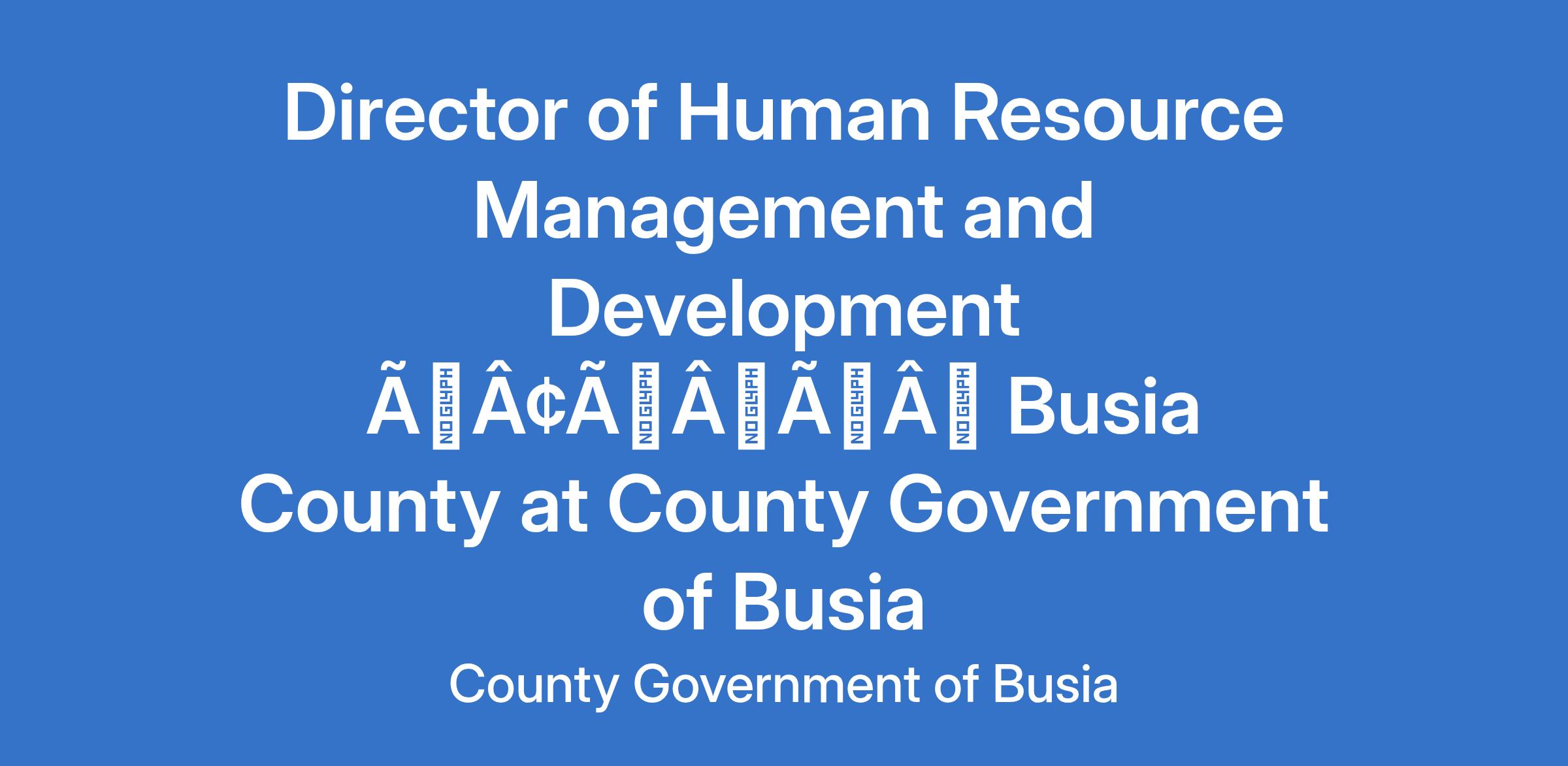 Director of Human Resource Management and Development âÃÂàBusia County at County Government of Busia