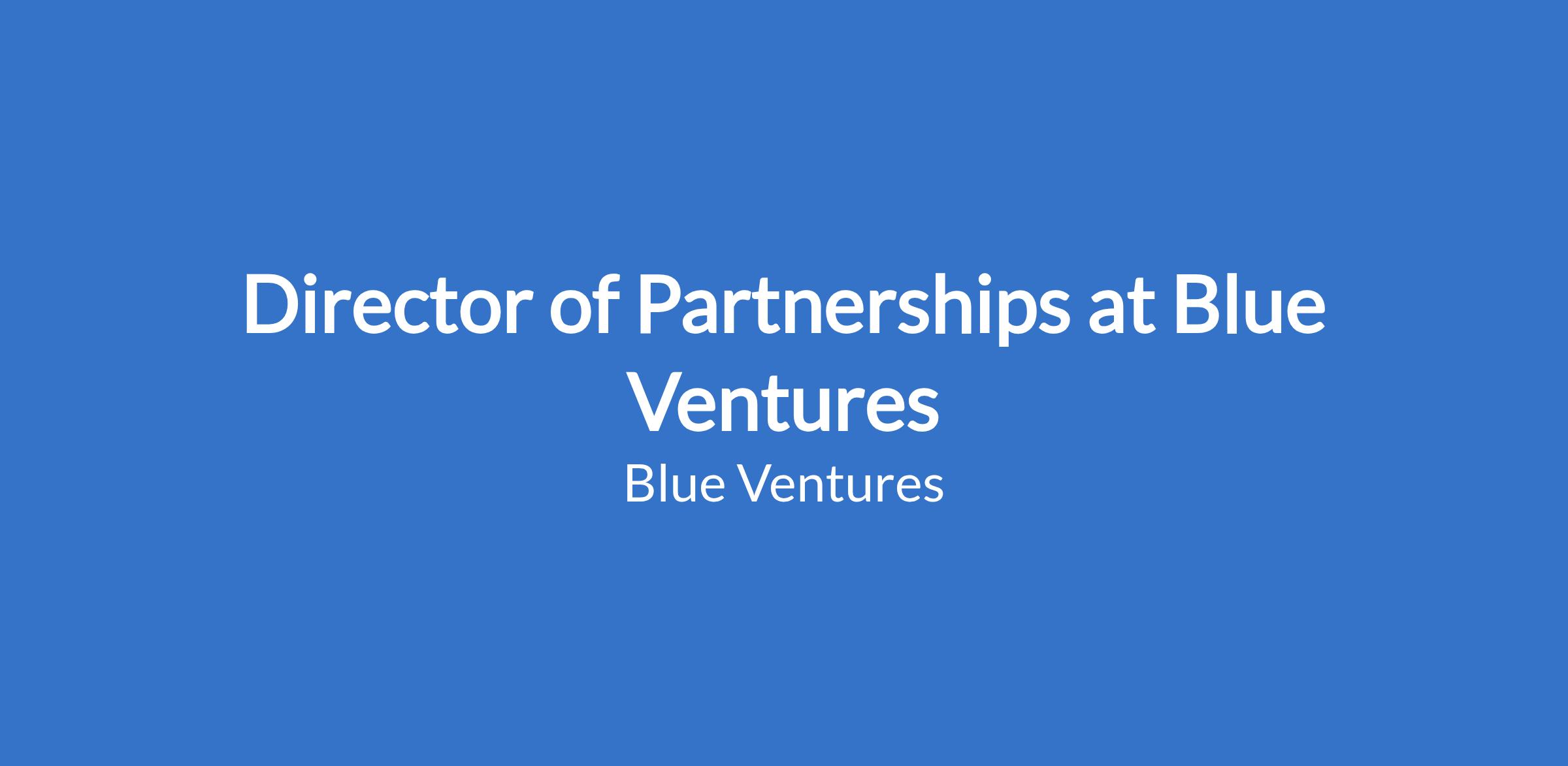 The Director of Partnerships is a pivotal senior leadership role accountable for building, stewarding and scaling Blue Ventures' global partner network — ensuring BV can deliver impact at scale with and through partners as a core element pillar of its strategy to 2030.