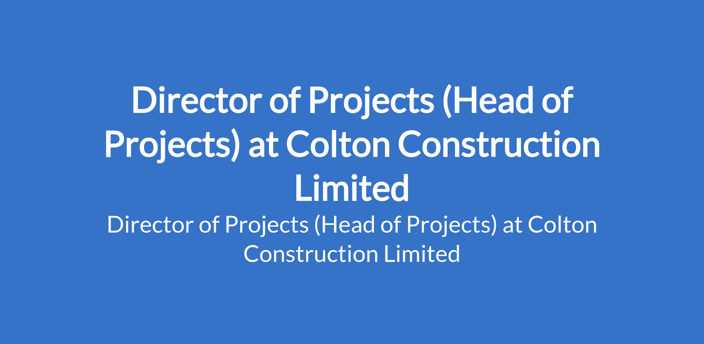 Colton Construction Limited is recruiting to fill the position of: Director of Projects (Head of Projects). The position is located in Ikeja, Lagos State. Interested candidates should possess relevant qualifications with a minimum of 15 years work experience in the construction industry; at least 710 years in senior leadership roles managing large-scale projects.