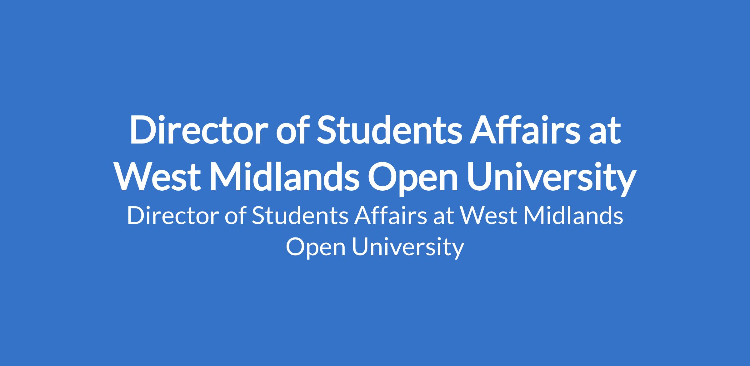 West Midlands Open University invites applications from suitable candidates to fill the position of: Director of Students Affairs. The position is located in Ikeja, Lagos State. Interested candidates should possess a minimum of a Bachelor's Degree in Student Personnel Management, Social Sciences, Education, or a related field, and a Master's Degree; PhD will be an added advantage, with 810 years of relevant experience in student affairs or university administration.