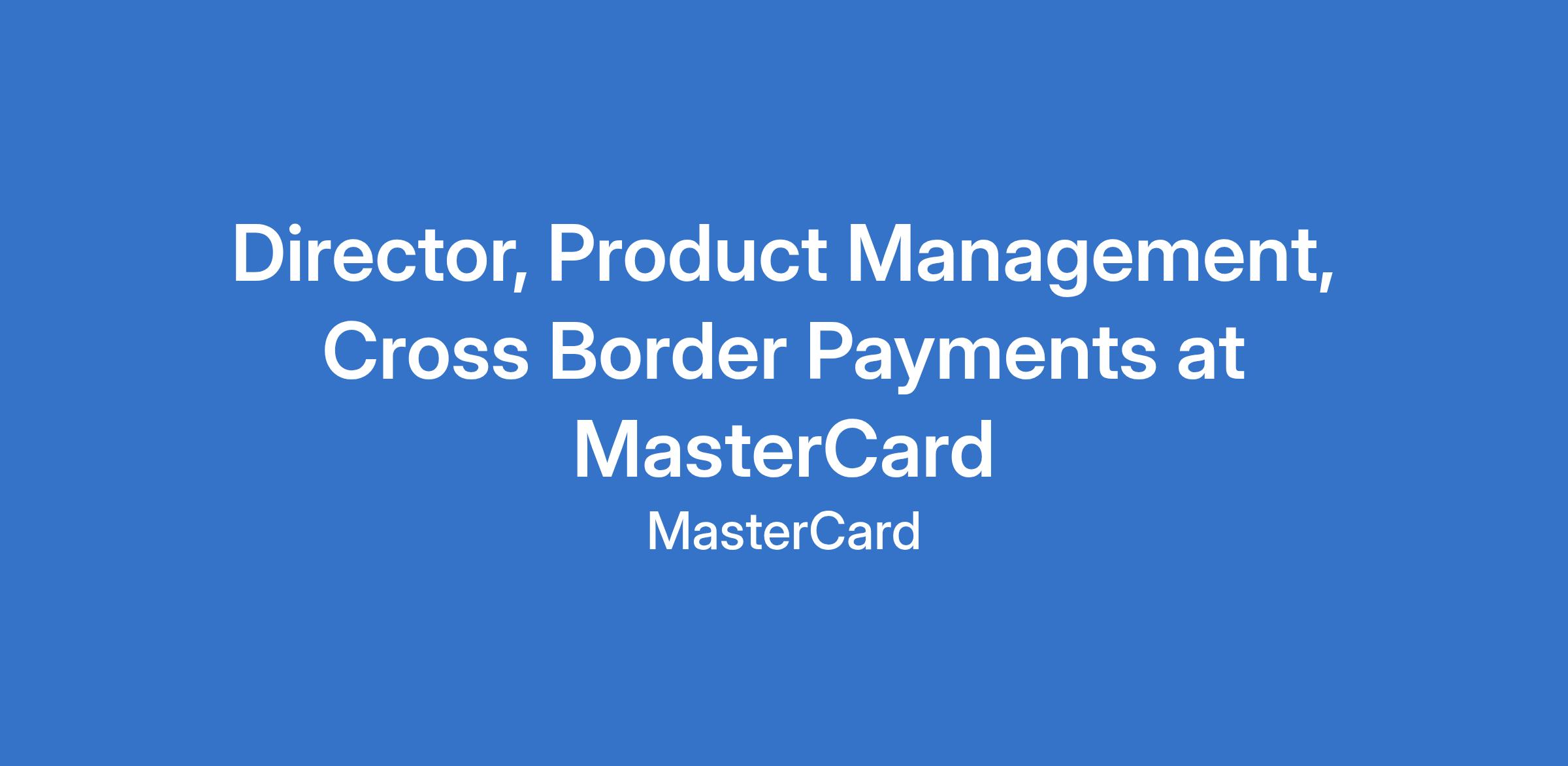 Director, Product Management, Cross Border Payments at MasterCard