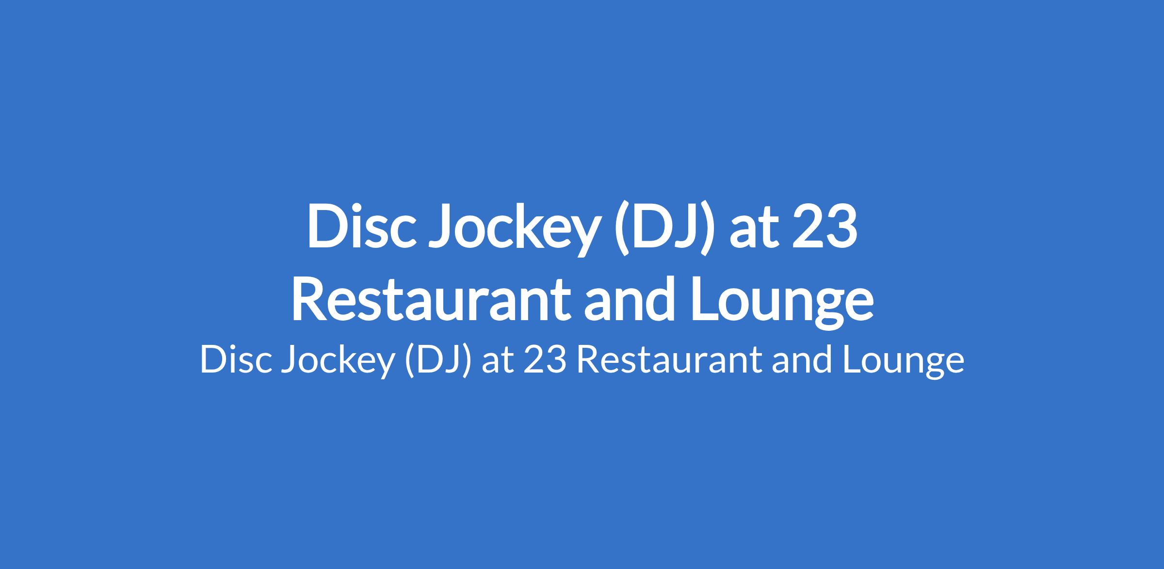 Disc Jockey (DJ) at 23 Restaurant and Lounge