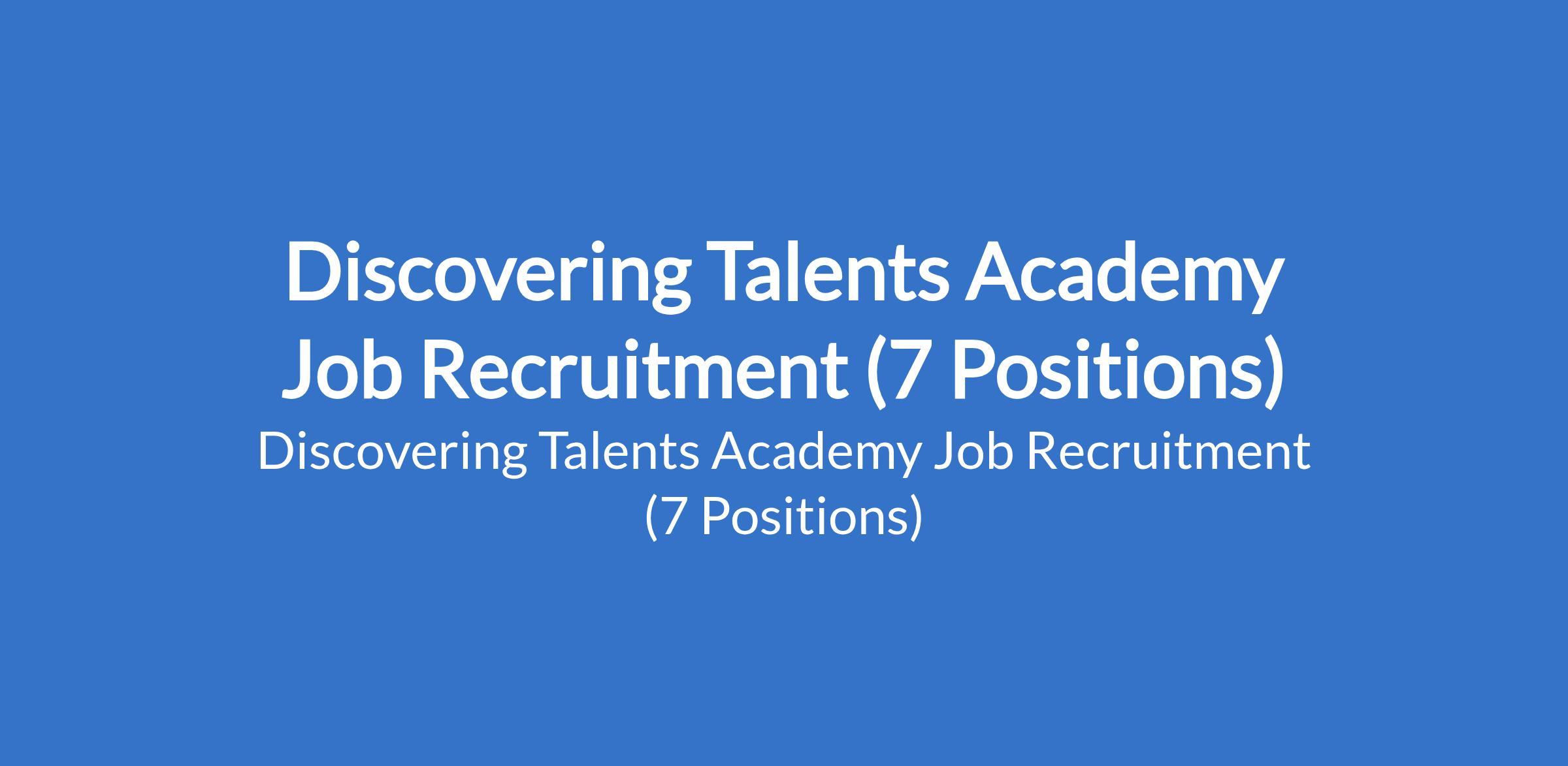 Discovering Talents Academy is recruiting suitable candidates to fill the following positions in Abuja: Academic Project Supervisor & School Event Manager, Mathematics Teacher, Pre-Vocational Studies Teacher, Quality Assurance Officer, Head of Early Years / Nursery Department, Front Desk Officer, and English Language / Class Teacher.