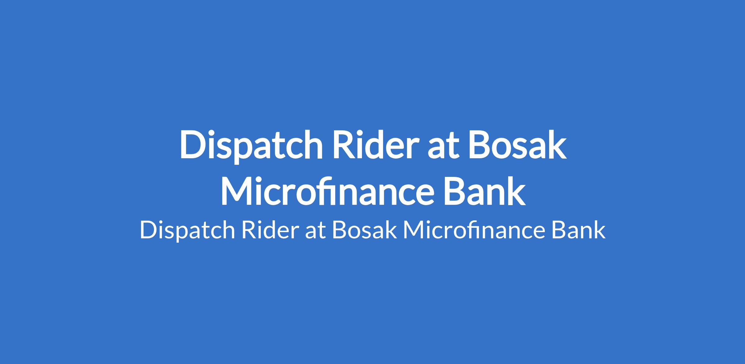 Bosak Microfinance Bank is recruiting to fill the position of: Dispatch Rider. The position is located in Ikeja, Lagos State. Interested candidates should possess relevant qualifications with work experience.