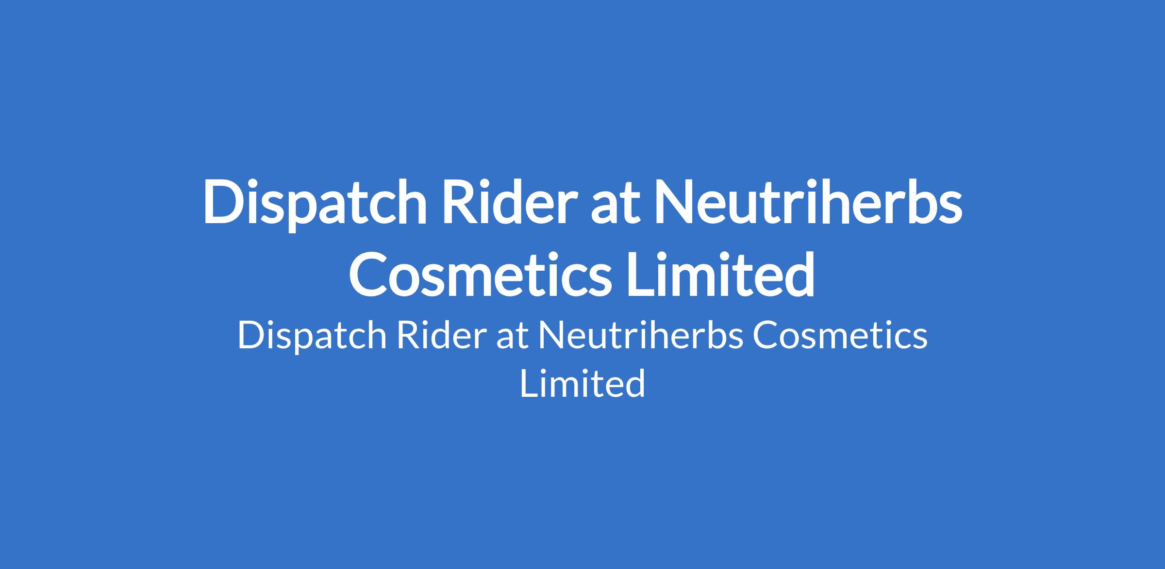 Neutriherbs Cosmetics Limited is recruiting to fill the position of: Dispatch Rider. The position is located in Lagos State. Salary: N150,000 - N200,000 monthly. Interested candidates should possess relevant qualifications.