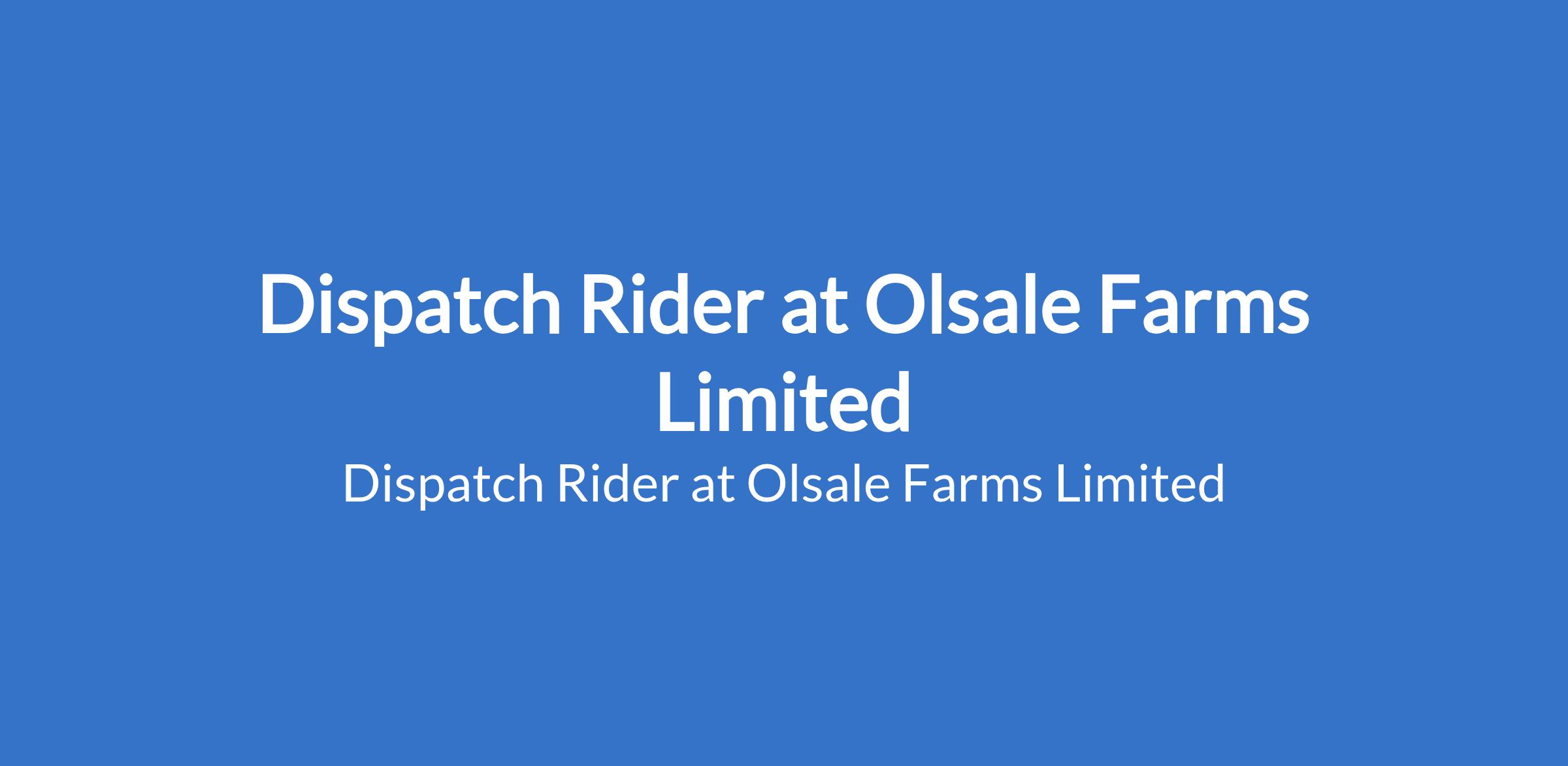 Olsale Farms Limited is recruiting to fill the position of: Dispatch Rider. The position is located in Lagos State. Interested candidates should possess a valid Riders Card or Drivers License Class A; mandatory and must have proven experience as a dispatch rider.