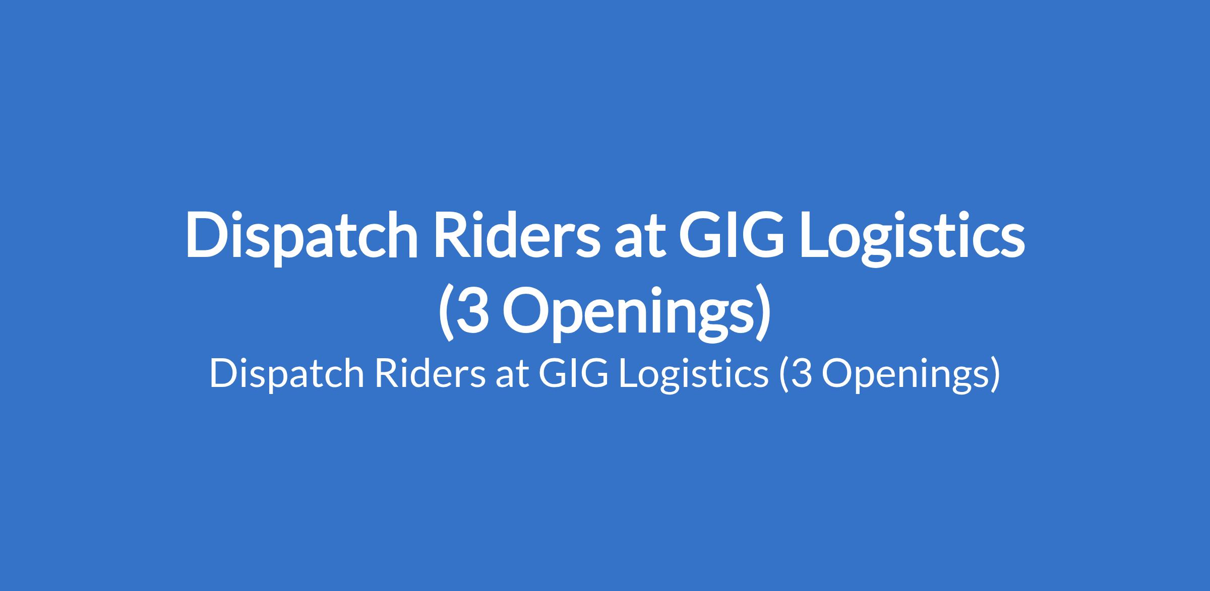 GIG Logistics is recruiting to fill the position of: Dispatch Rider. The position is located in Abuja, Lagos, and Rivers State. Interested candidates should possess an SSCE / High School Certificate with 12 years experience as a dispatch rider (preferably in a logistics company).